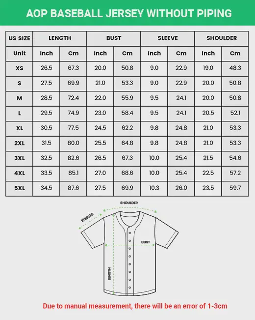 The All Over Print Baseball Jersey offers the perfect blend of style, durability, and affordability. With our custom baseball jersey service, you can personalize each piece to create truly unique designs and sell them online using sublimation printing. Step up to the plate and feel like part of the team with our on-demand Unisex Baseball Jersey.