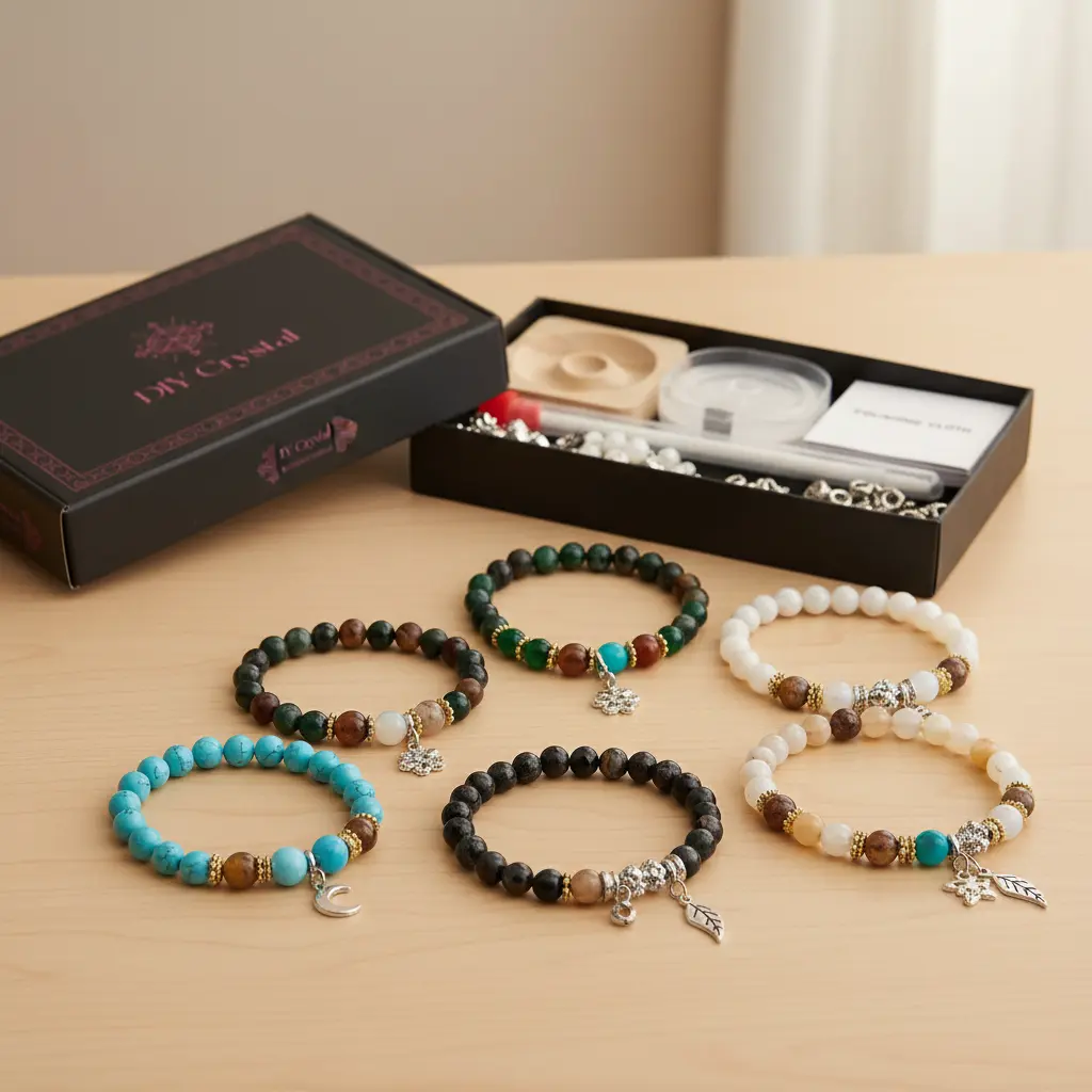 ·User-friendly beading tools (needle, string, bead holder, polishing cloth)