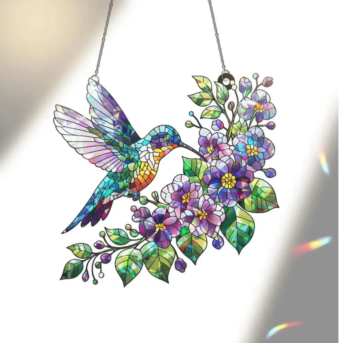 Brighten your home with this beautiful **stained glass suncatcher**, designed to capture sunlight and fill your space with vibrant colors. This elegant **window hanging decor** creates a warm, artistic atmosphere in any room.
