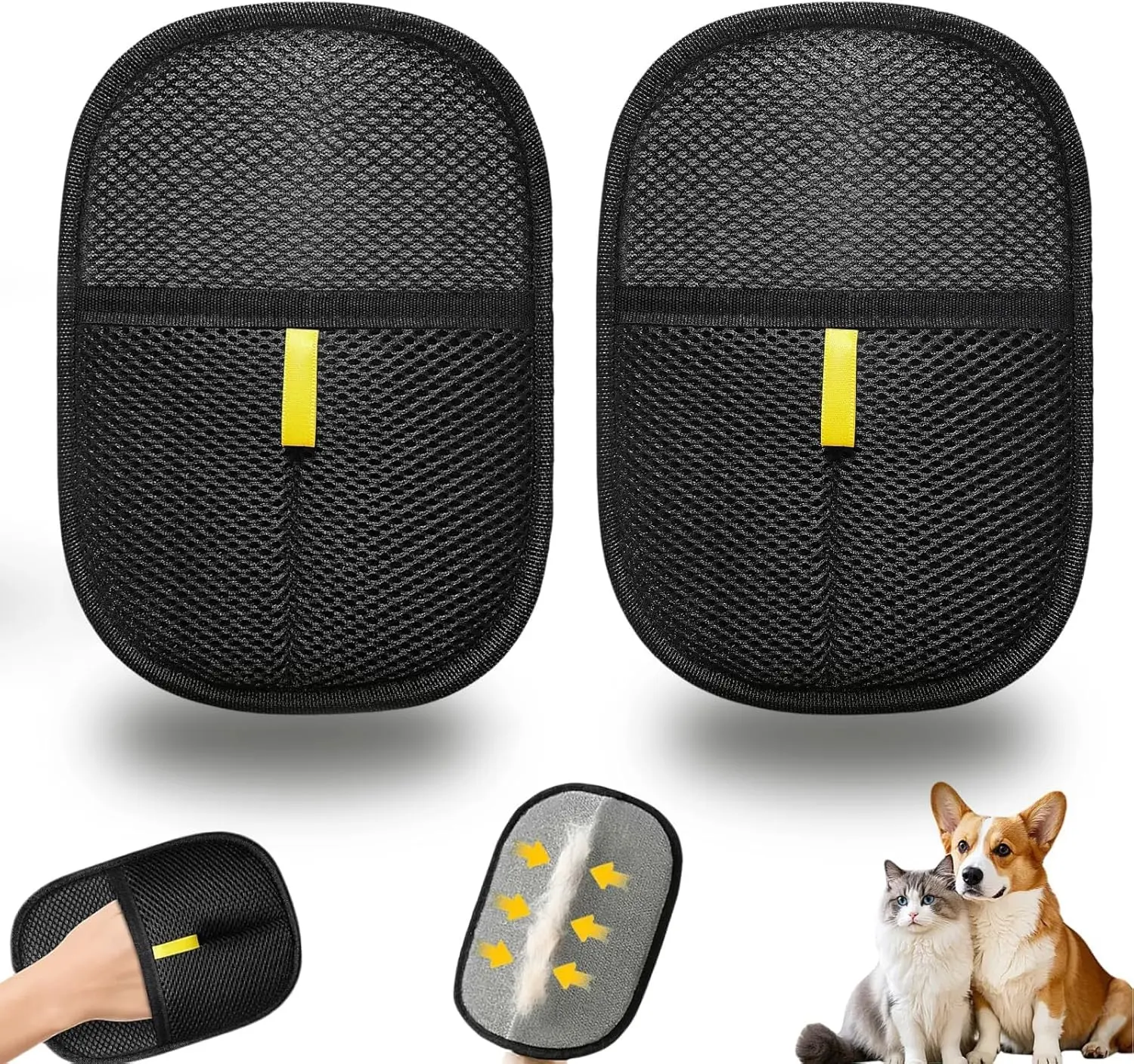 Static pet hair removal glove brush, reusable cat and dog static hair removal device beauty glove brush tool, suitable for sofas, clothes, carpets, curtains (black -2 pieces)