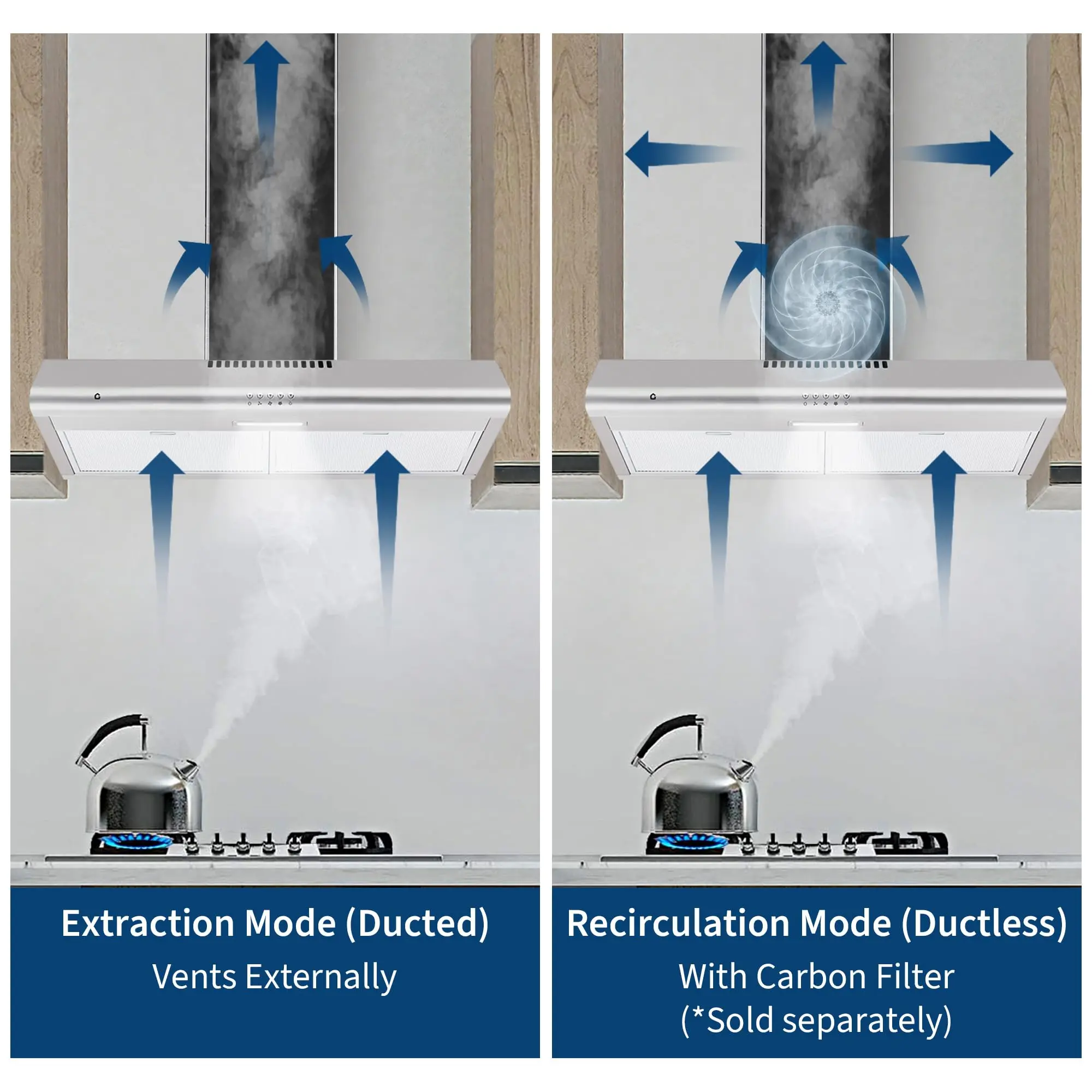·Versatile Installation: Supports both ducted and ductless modes to fit your kitchen setup and ventilation needs.