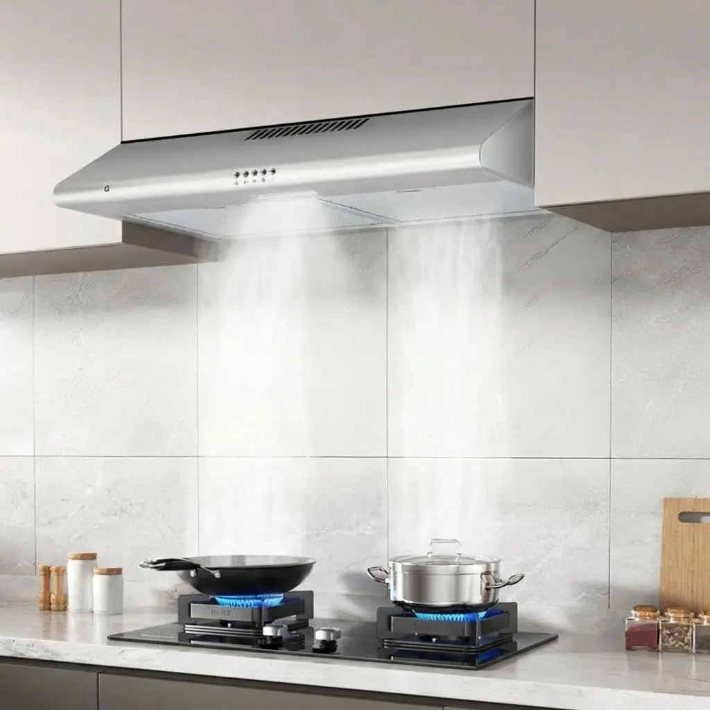 ·Powerful Ventilation: Equipped with a 100 CFM motor, efficiently removes smoke, odors, and grease from your kitchen for a cleaner cooking environment.