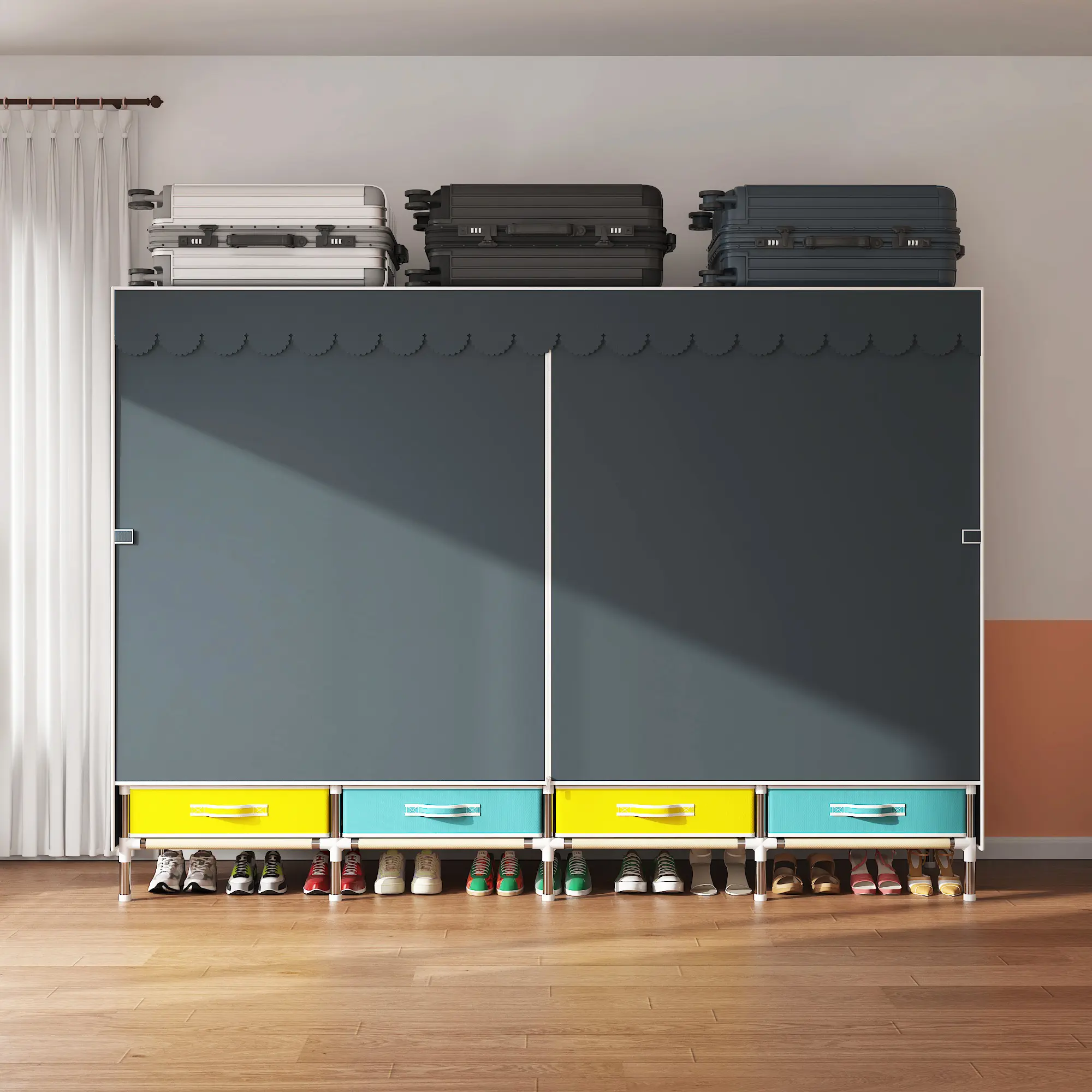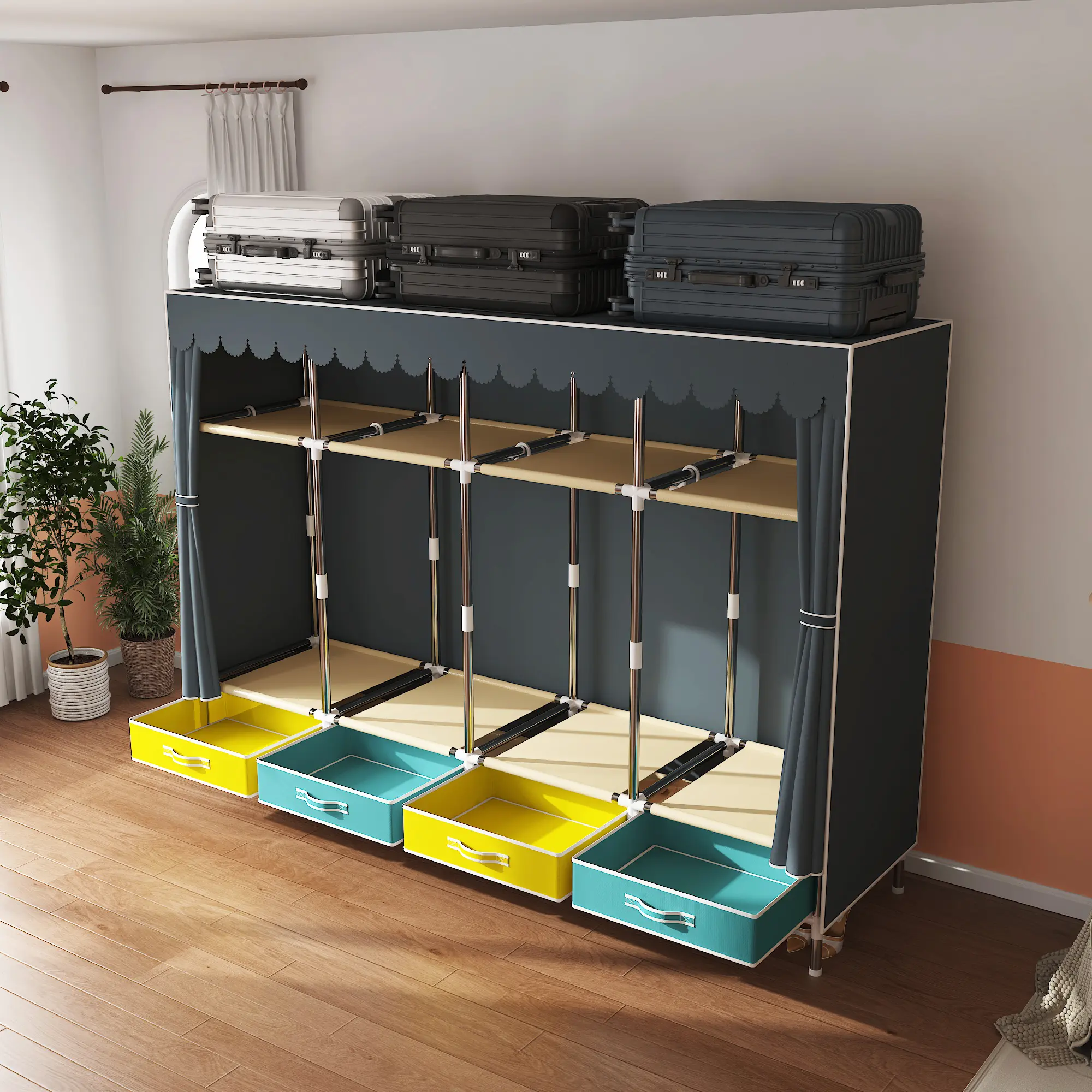 4 Hanging Rods: Provides ample space for hanging clothes.
