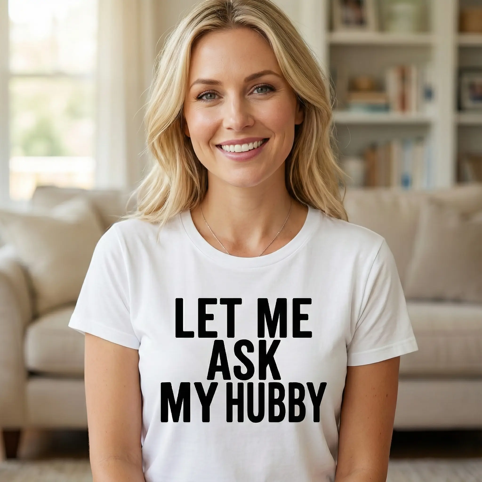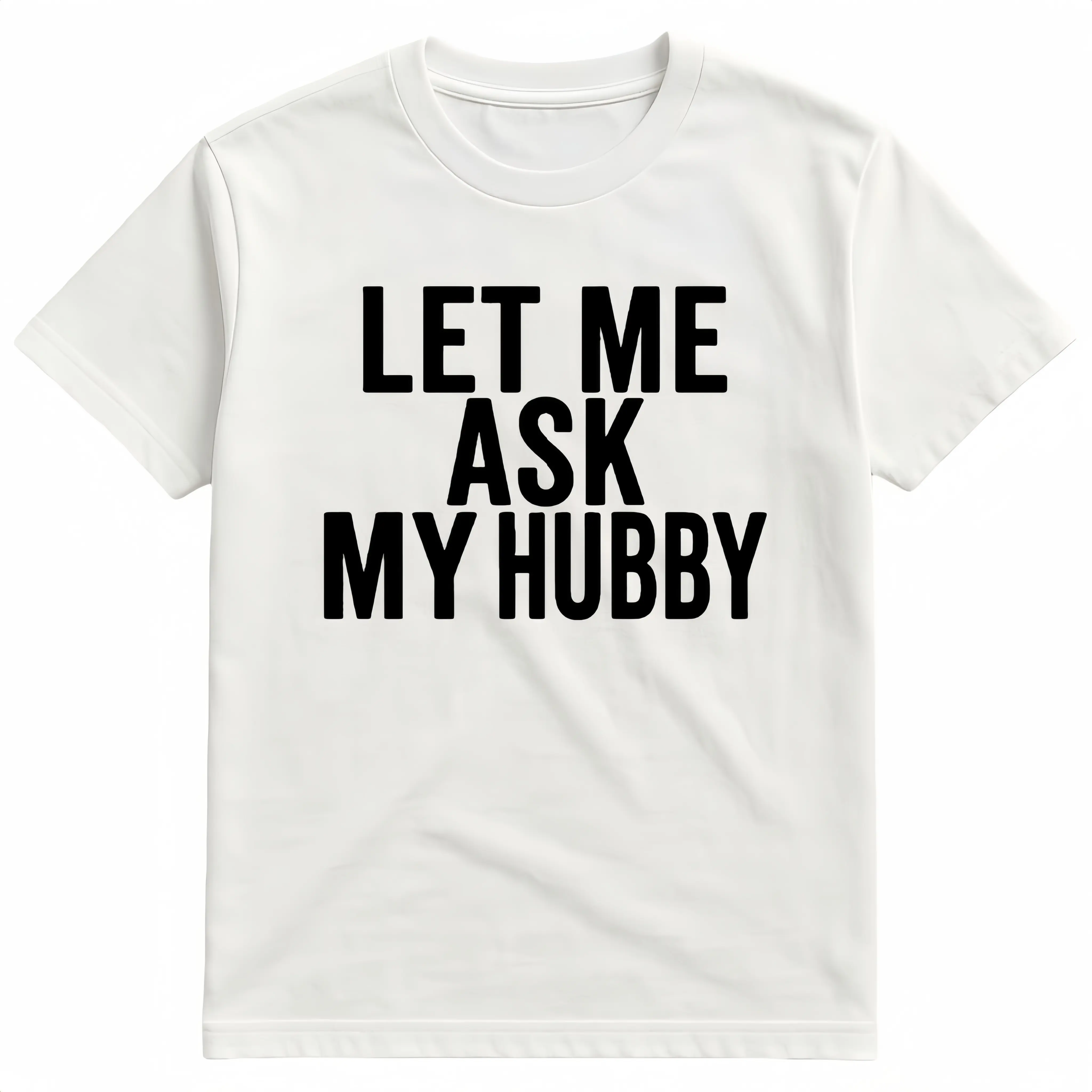 Best Gift for Wifey Let Me Ask My Hubby Women's T-Shirt Funny Anniversary Birthday Mother's Day Present Unique Humorous Shirt for Her Cool Tees for Wife Girlfriend Gift Idea