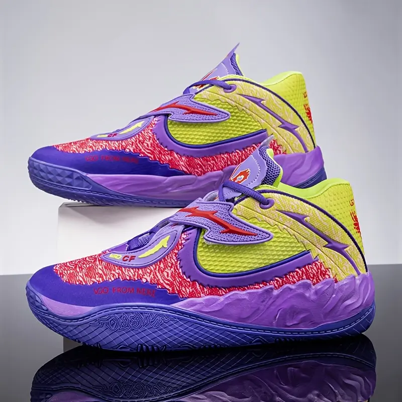 (New)[Sneakers] Basketball Footwear for Men, Offered in Various Colors Such As Purple, Neon Green, And Blue.Features a Breathable Mesh Upper.Ideal for Year-Round Use-Running, Workouts, And Casual Attire.Perfect for Basketball, Jogging