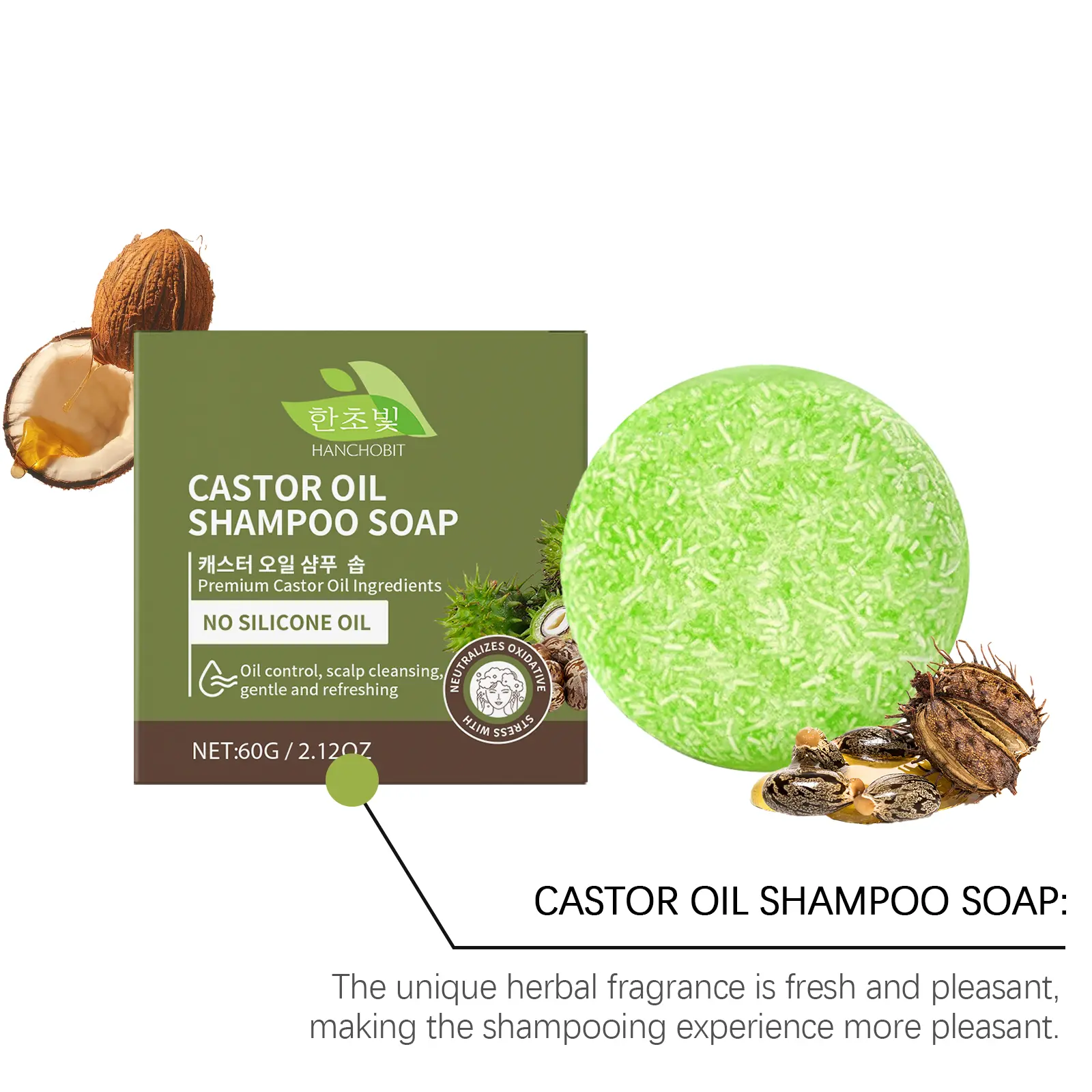 HANCHOBIT Castor Oil Shampoo Bar — Hair Care Soap with Castor Seed Oil for Gentle Cleansing and Nourishment