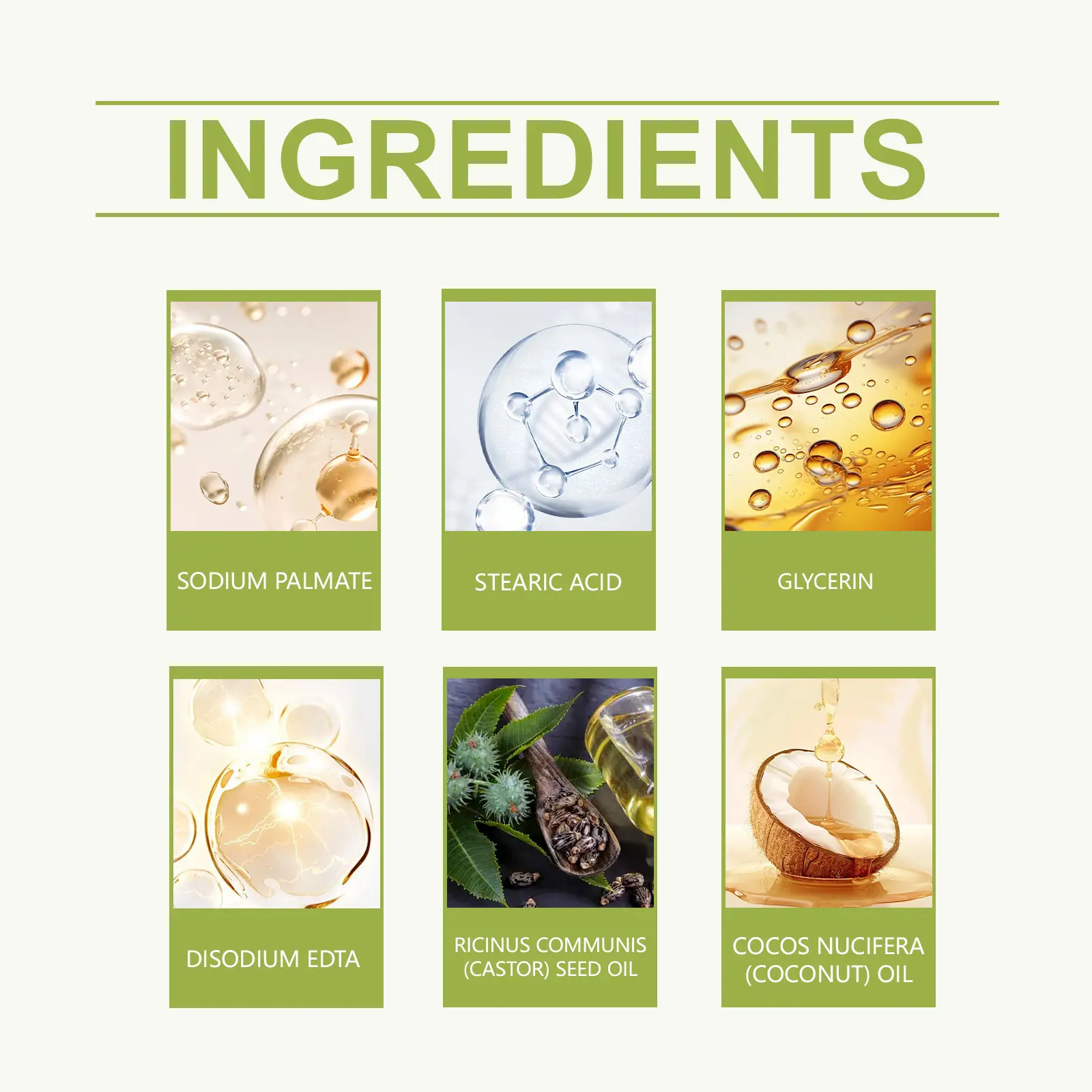 Our castor oil shampoo bar is carefully formulated with sodium palm oilate and stearic acid. Designed specifically for deep hydration and hair repair, improving hair health and shine. It’s very convenient to use: Wet hair and scalp with clean water. Take a small amount of the product, rub it between your hands to create foam, then apply it to hair and scalp, massage for 3–5 minutes. Rinse thoroughly with clean water. It also contains nourishing ingredients that gently nourish the scalp and hair. Antioxidant ingredients protect hair from free radical damage