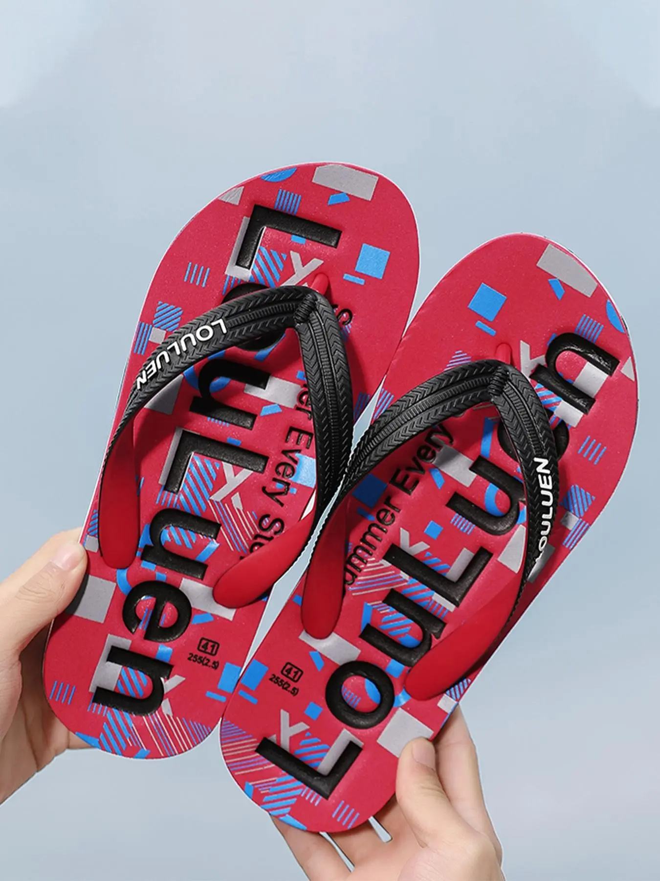 Men's Flip-Flops with Letter Print, Casual PVC Sandals, Comfortable Beach Shoes, Lightweight Slippers for Home, Bathroom, and Beach