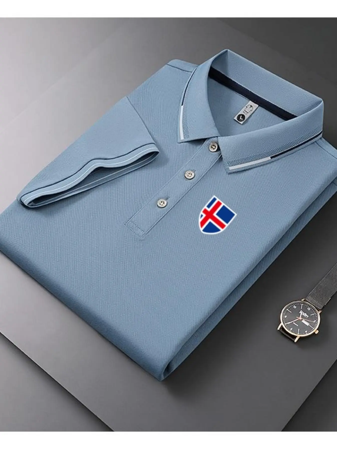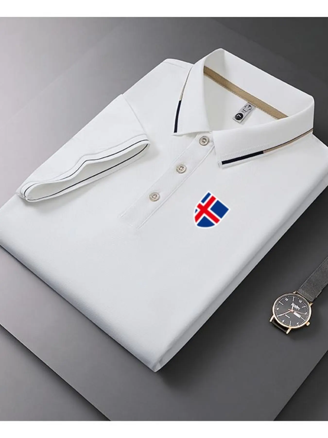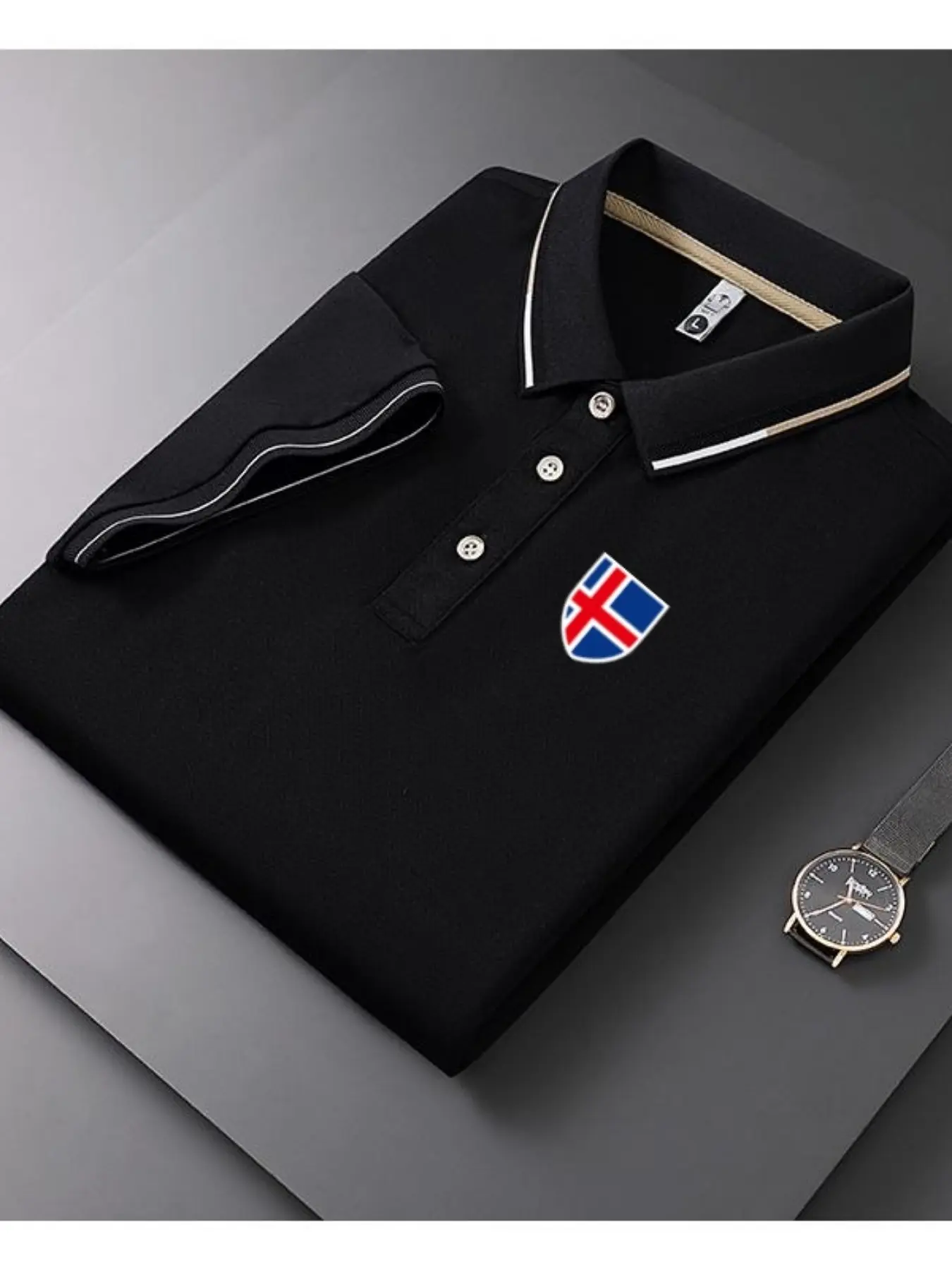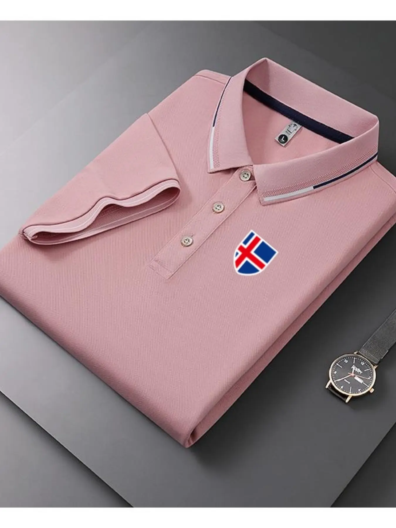 Men's Casual Summer Print T-Shirt, Iceland Flag Design, Geometric Pattern, Lightweight Breathable Polo Shirt, Short Sleeve Top