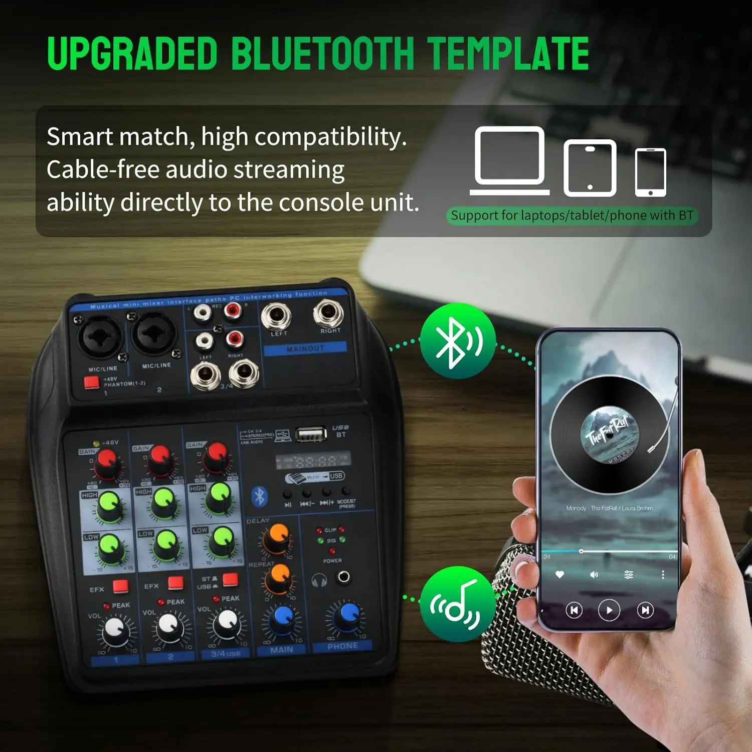 Upgrade your audio quality with the Kaschun M4 Mixer! This 4-channel mixer includes 48V phantom power and a USB sound card. Perfect for singers, streamers, and content creators. Easy to use, it enhances your live streaming and karaoke experience. Ideal for those looking to elevate their audio setup effortlessly.