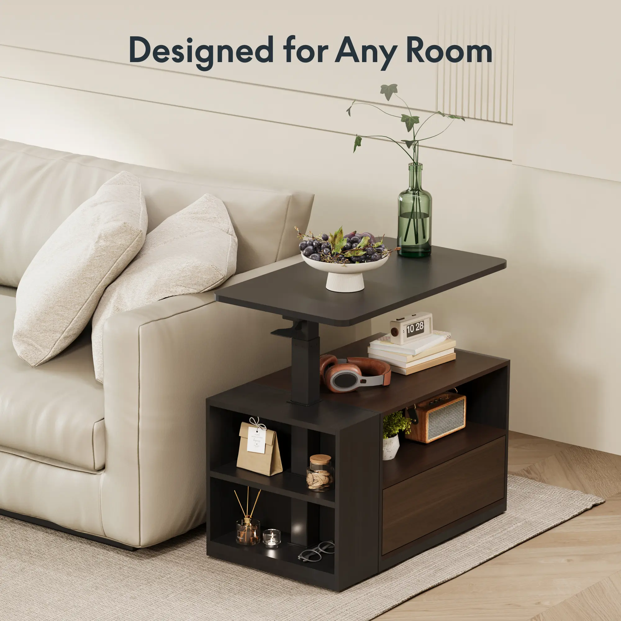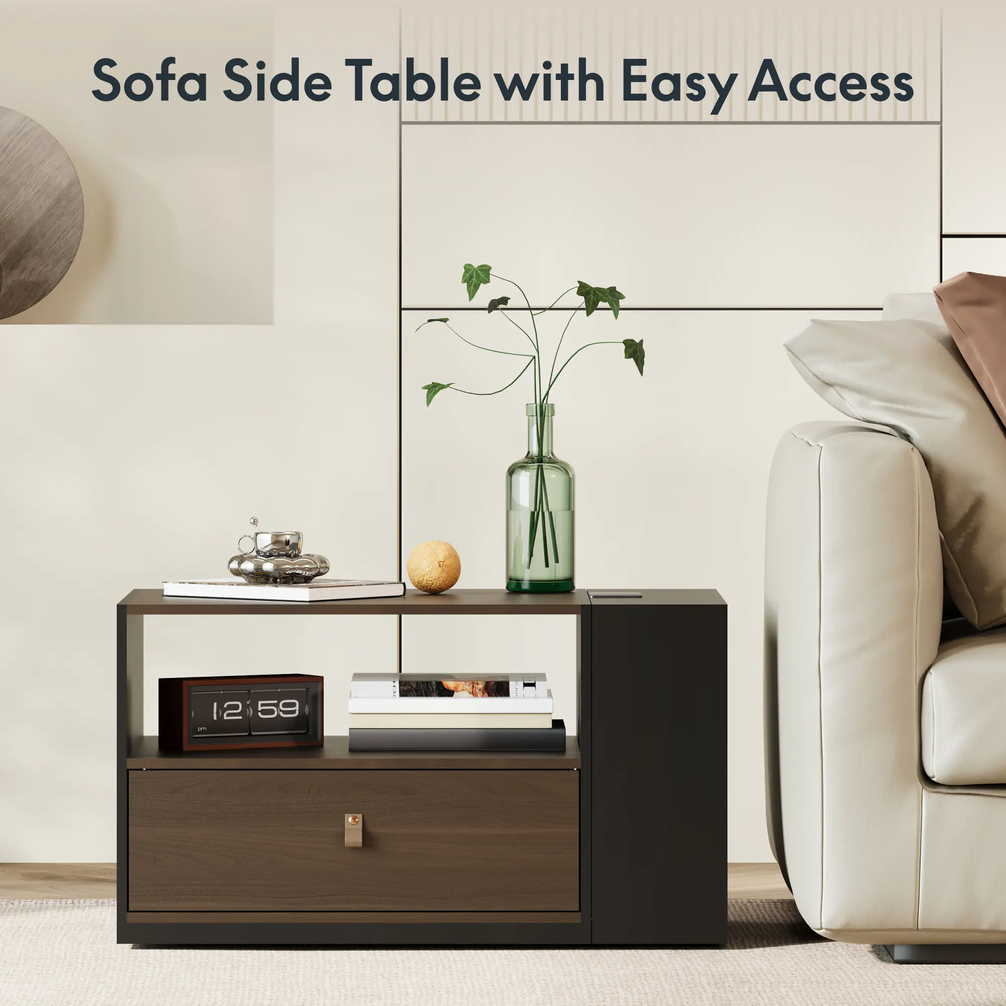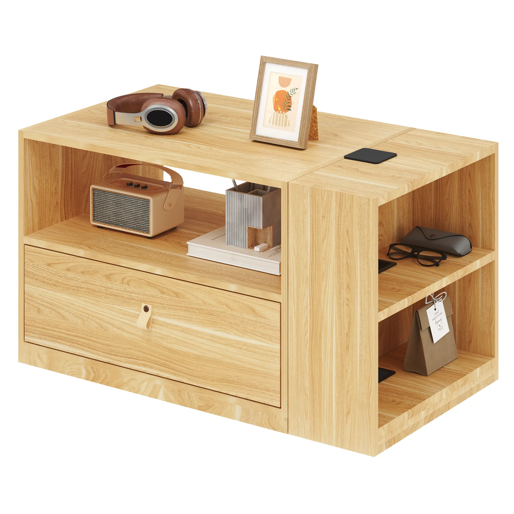 Keep your tabletop pristine. Featuring a spacious storage drawer, an open compartment, and a side cabinet, there’s a dedicated spot for your laptop, chargers, snacks, and books. It’s the ultimate organization hack for a tidy home.