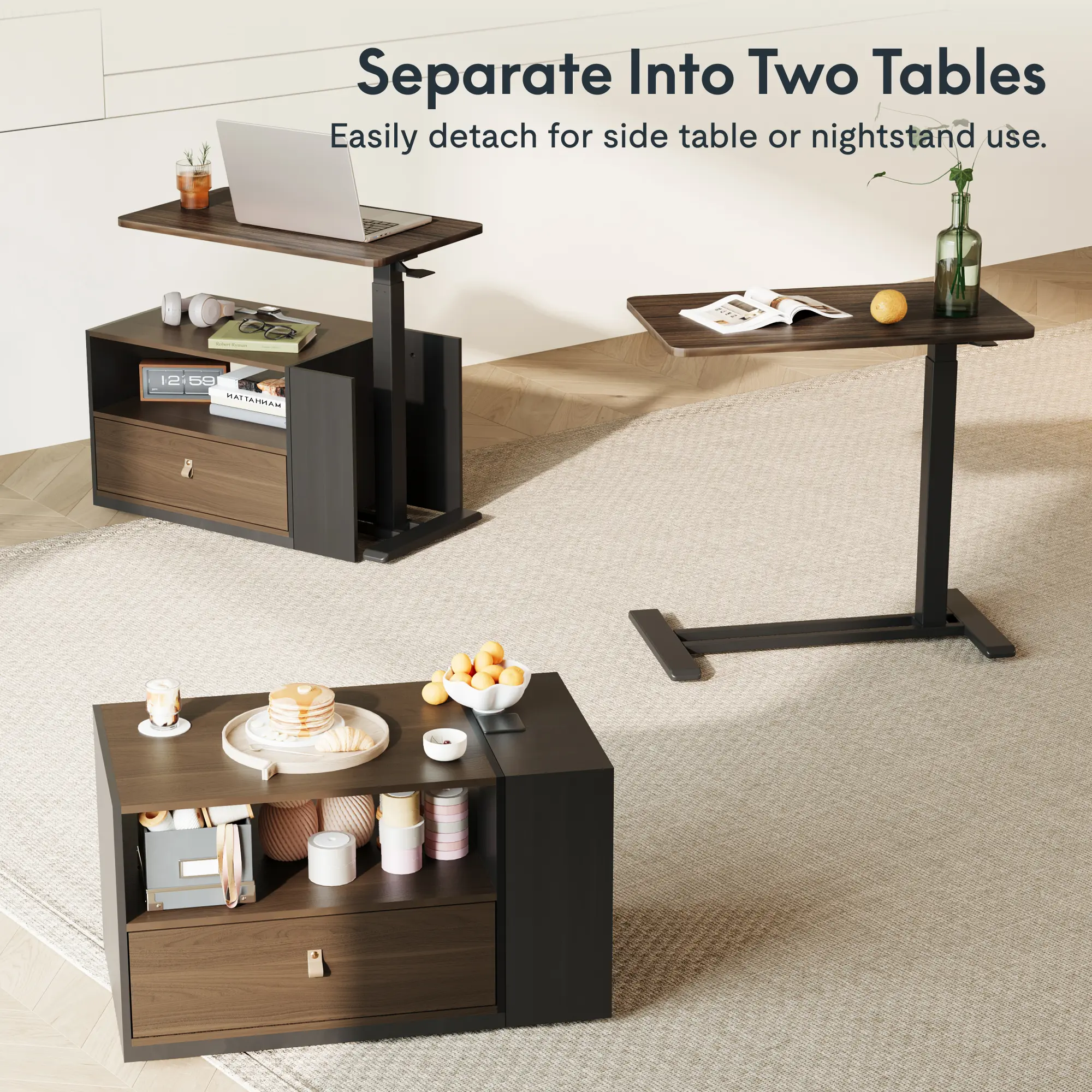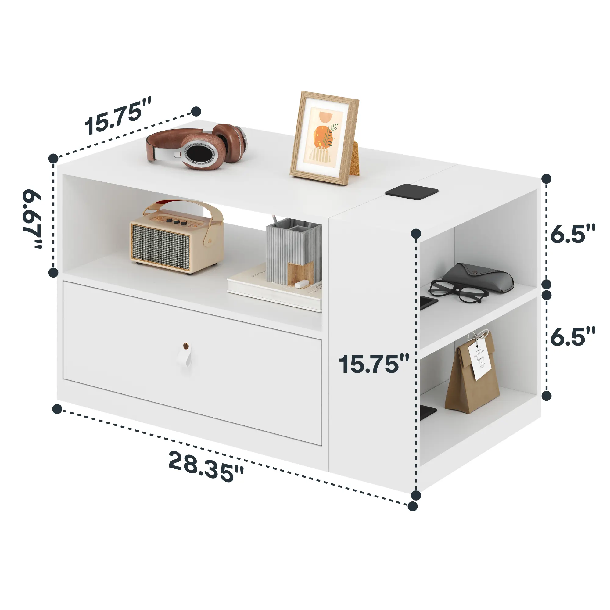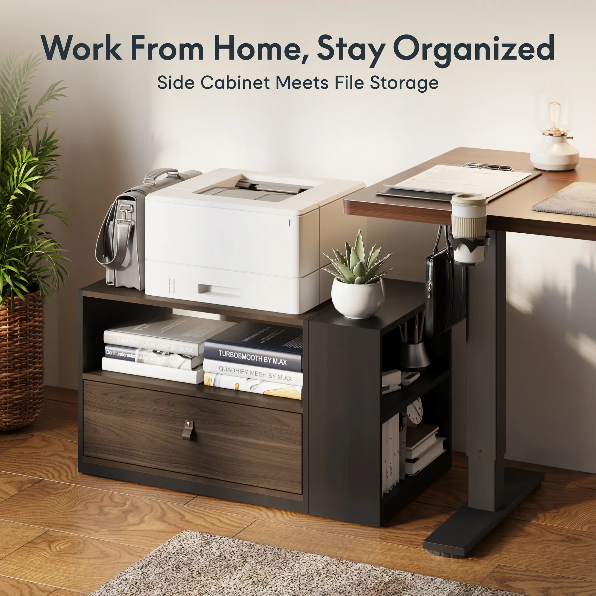 Keep your tabletop pristine. Featuring a spacious storage drawer, an open compartment, and a side cabinet, there’s a dedicated spot for your laptop, chargers, snacks, and books. It’s the ultimate organization hack for a tidy home.