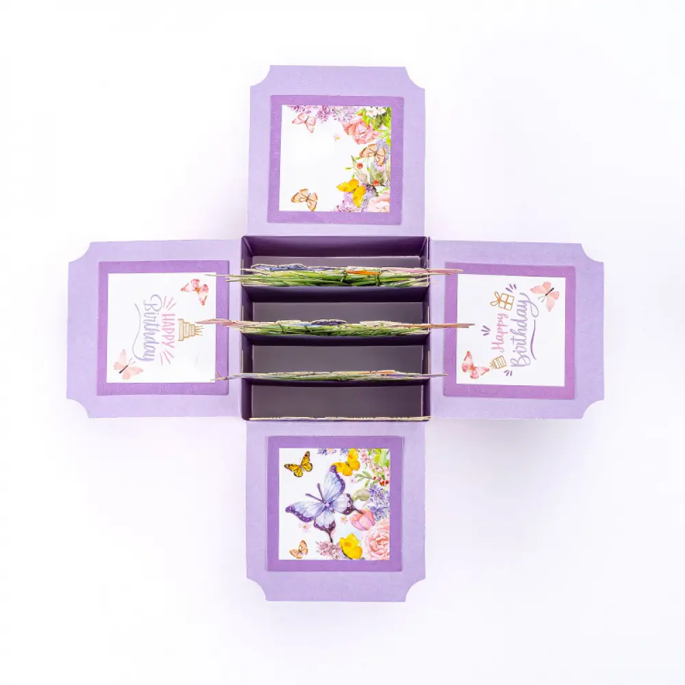 3D Popup Box Greeting Card - Handcrafted Butterfly Floral Design