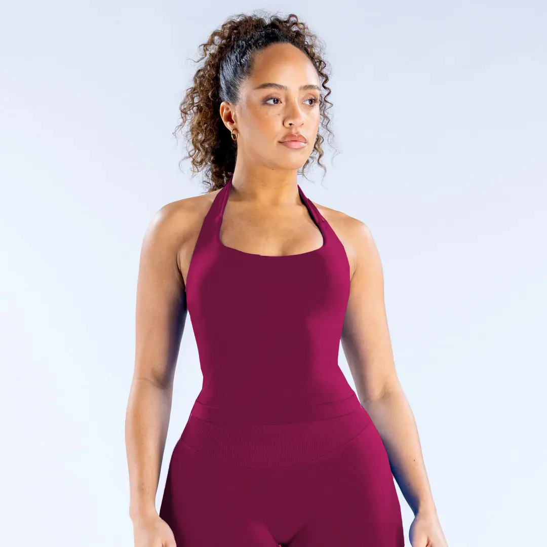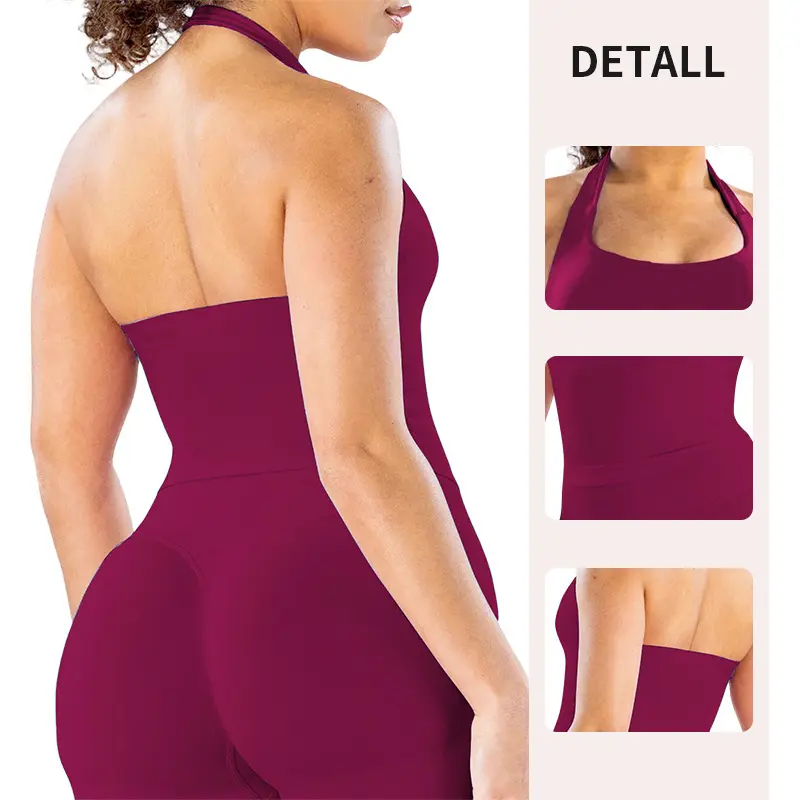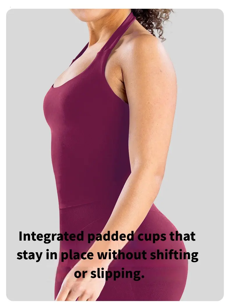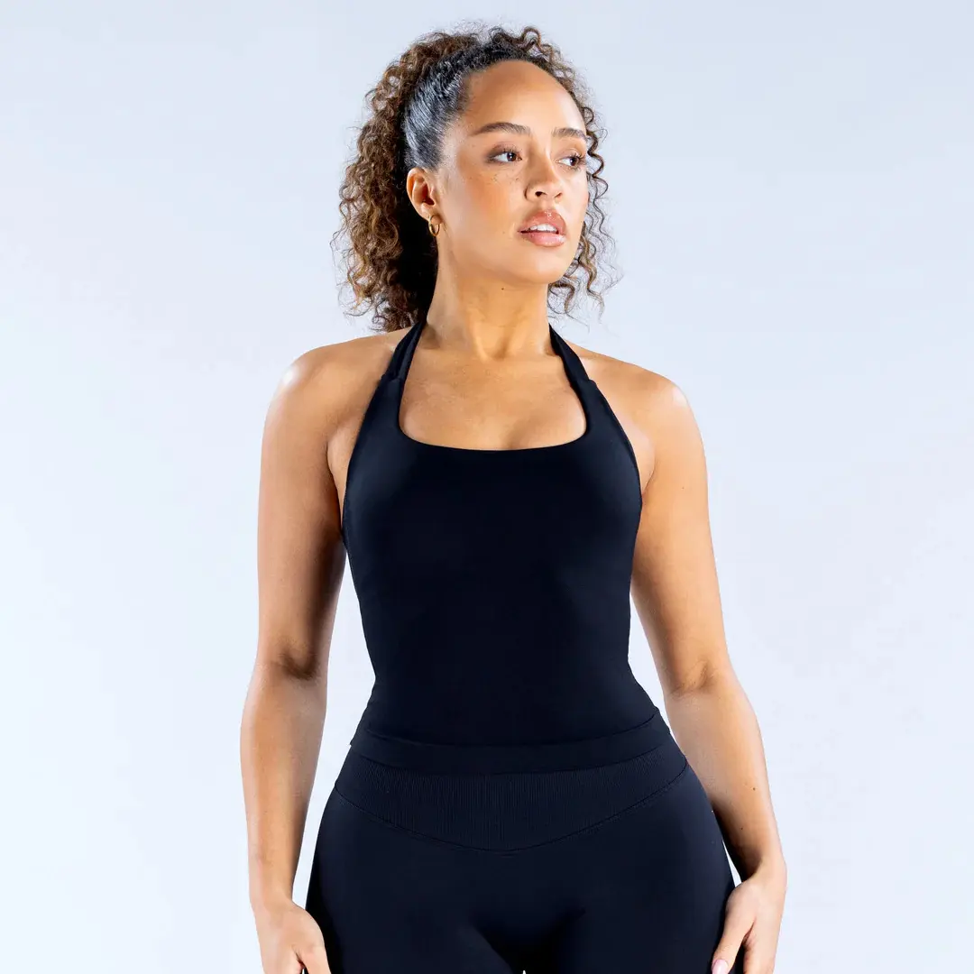 The halter neck design provides a flattering, elegant look while offering reliable support. The open back enhances breathability and adds a sexy, eye-catching detail perfect for yoga, gym training, or casual wear.