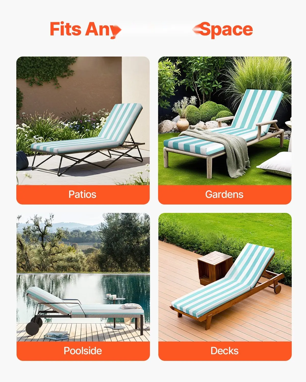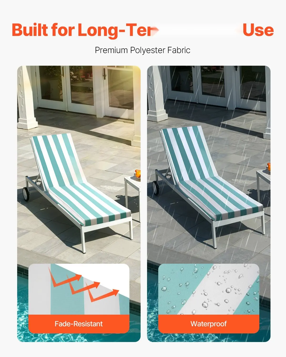 ·Water-Resistant & Fade-Resistant: Crafted from premium polyester fabric, cushions for lounge chairs resists water and fadingâideal for outdoor use. Whether under direct sunlight or in light rain, it stays in great shape for long-term enjoyment.