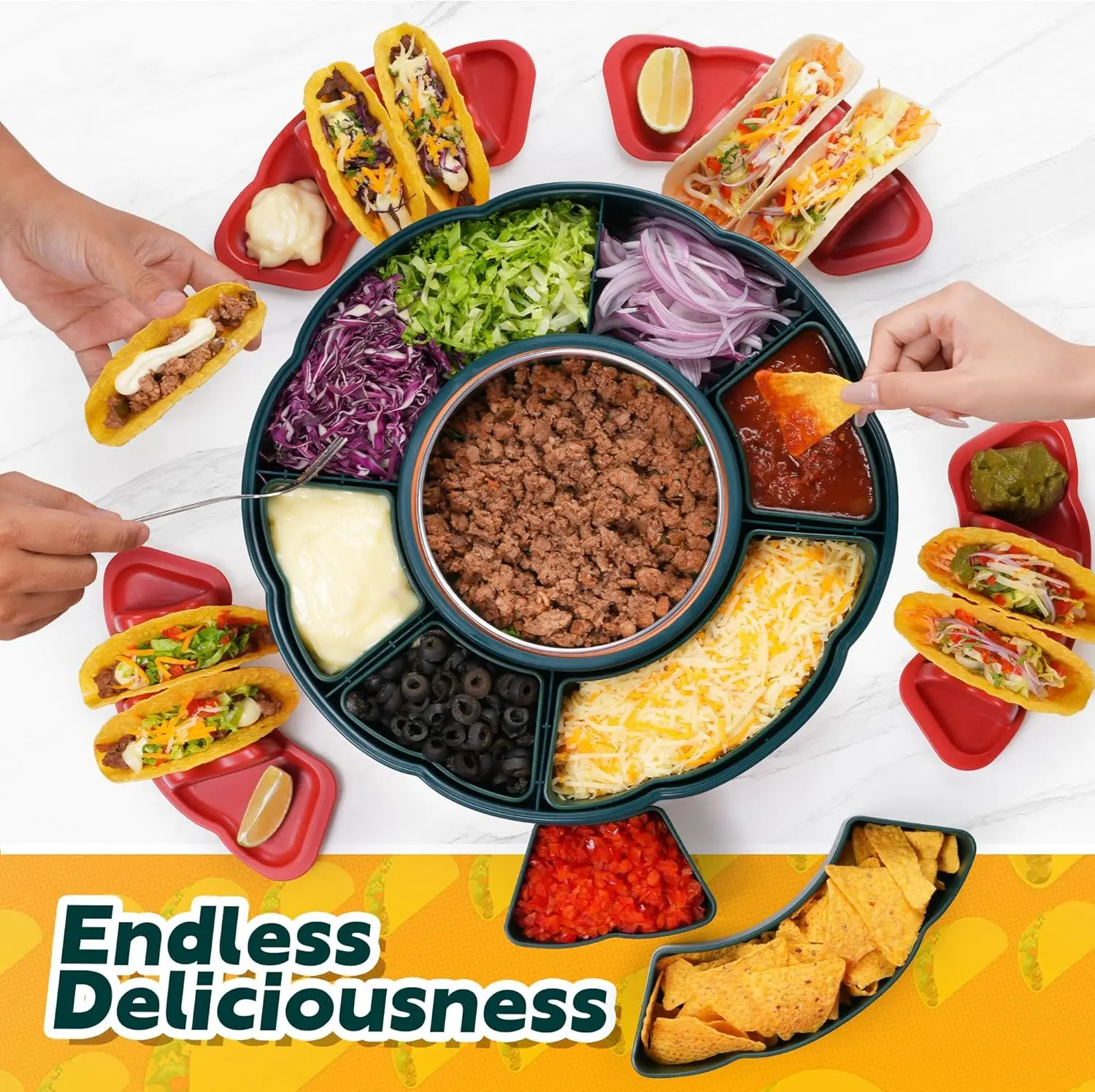 ·Multi-Use Serving Platter for Any Occasion: Make burritos, nachos, fajitas, and even chocolate fondue! The 360° design of taco bar supplies keep your table organized and interactive, whether it’s a family dinner, potluck, or Super Bowl party. Spacious, versatile, and mess-free