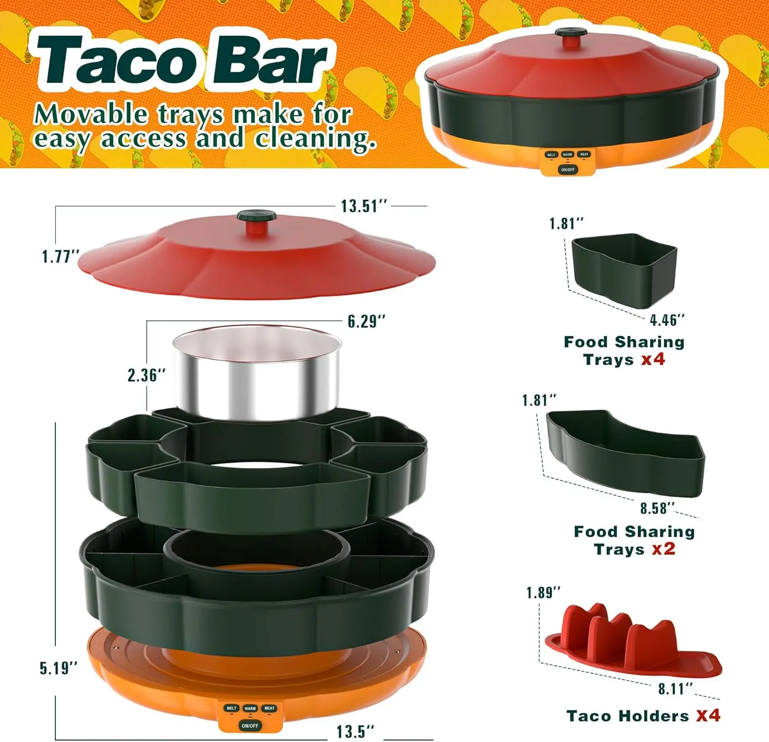 ·Crowd-Pleasing XL Capacity: Host stress-free parties with 6 deep, detachable trays and 4 taco holders that hold generous portions of toppings, meats, cheeses, and sauces. Easy to clean and dishwasher safe. Ideal for family dinner birthdays or BBQs