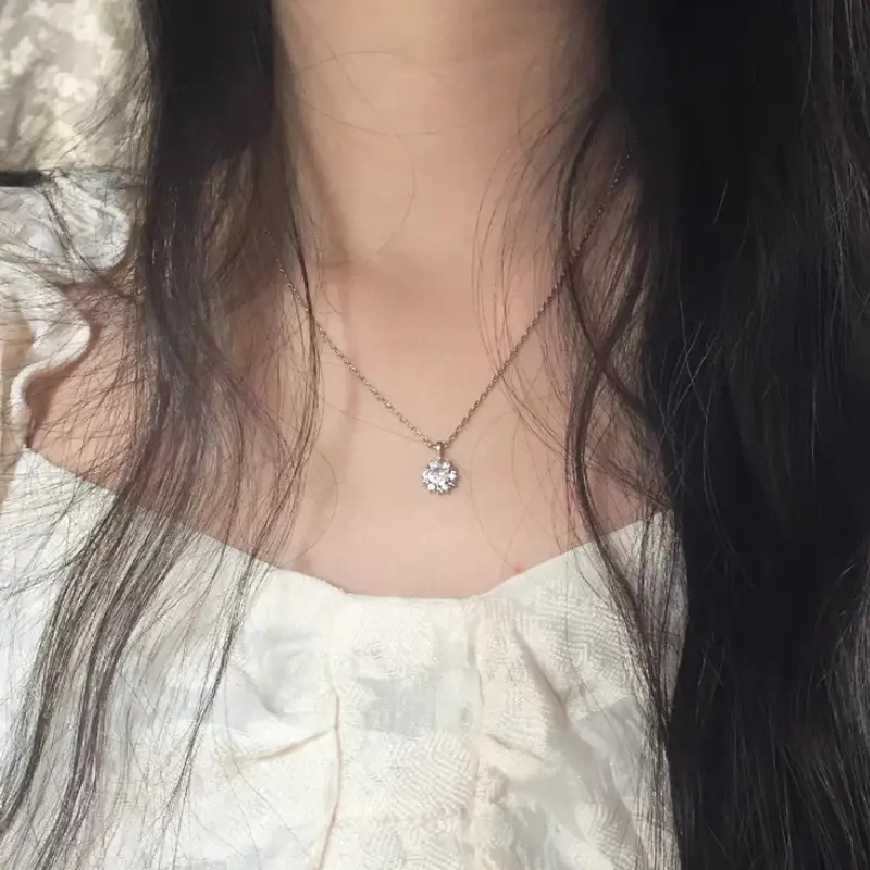 Luxury Sparkling CZ Pendant Necklace, Dainty Silver Plated Clavicle Chain, Elegant Everyday Wear Jewelry, Trendy 2026 Gift for Her
