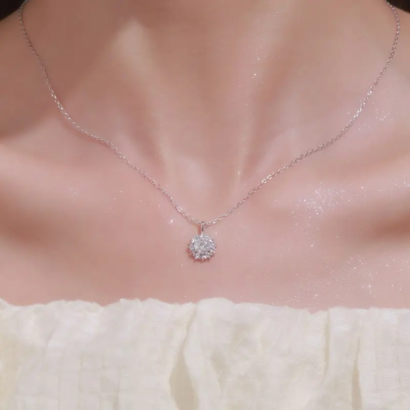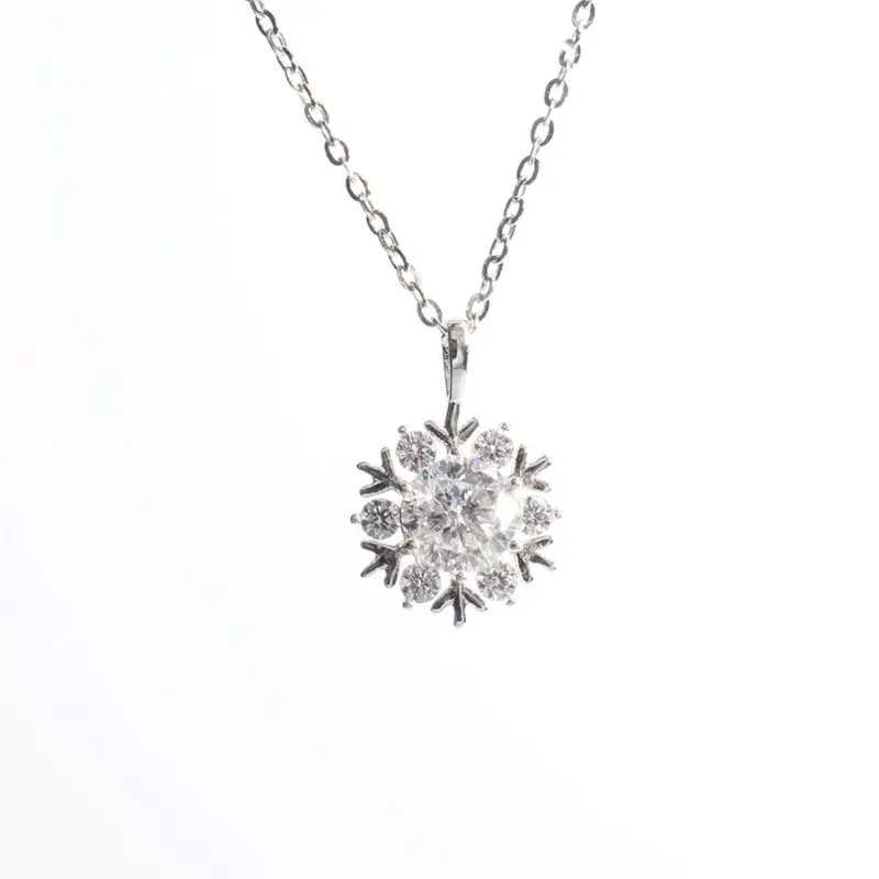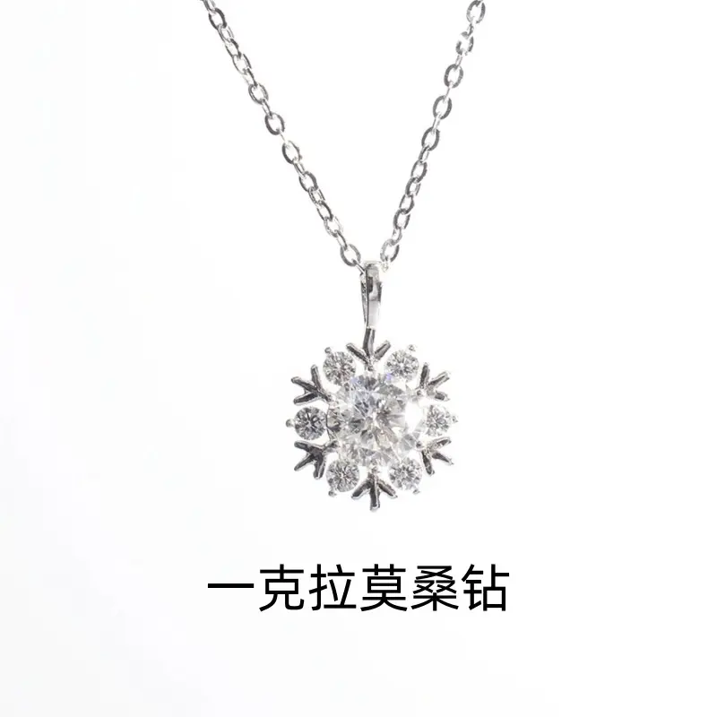 S925 Sterling Silver 1CT Moissanite Snowflake Pendant Dainty Luxury Adjustable Necklace