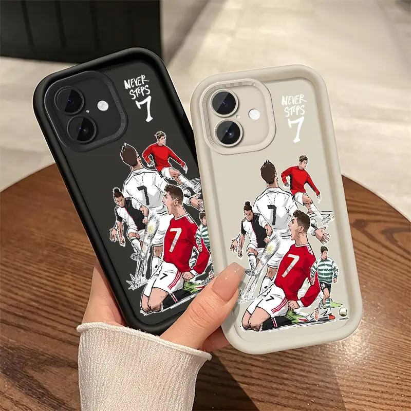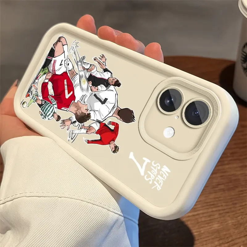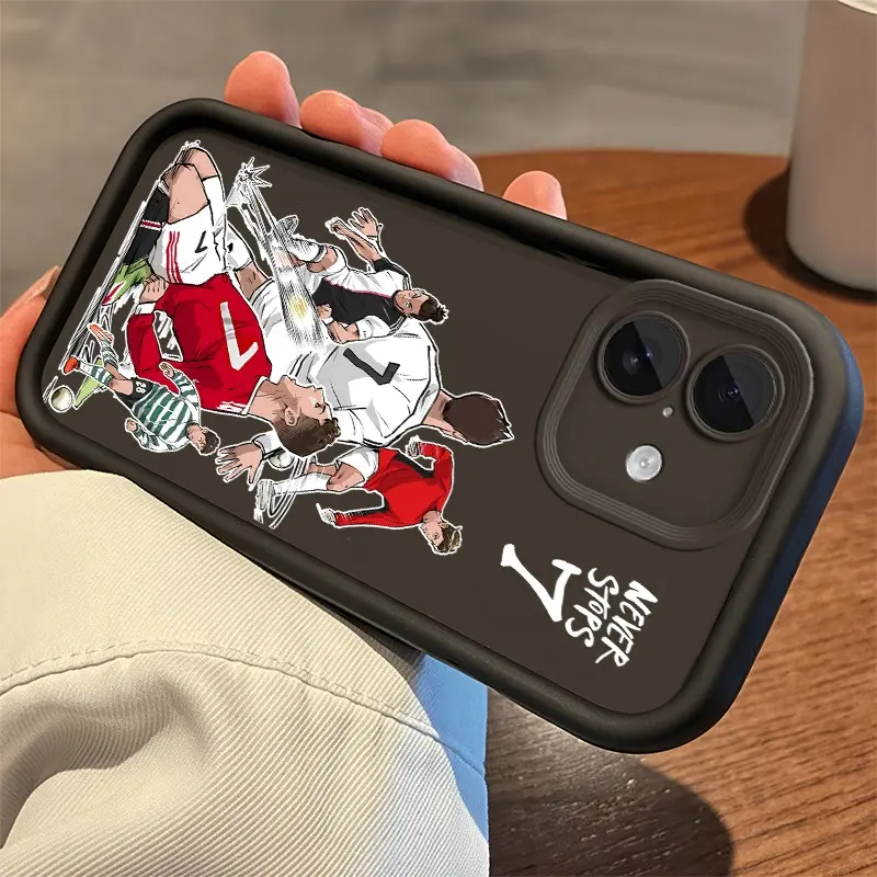 Soccer Player Number 7 Junk Phone Case for iPhone 17 Pro Max 16 E 15 14 Plus 13 12 11 Pro Max & Samsung S21S22 S23 S24 S25 S26 Ultra Plus, "Never Stops" Football Legend Brown Matte Shockproof Protective Cover