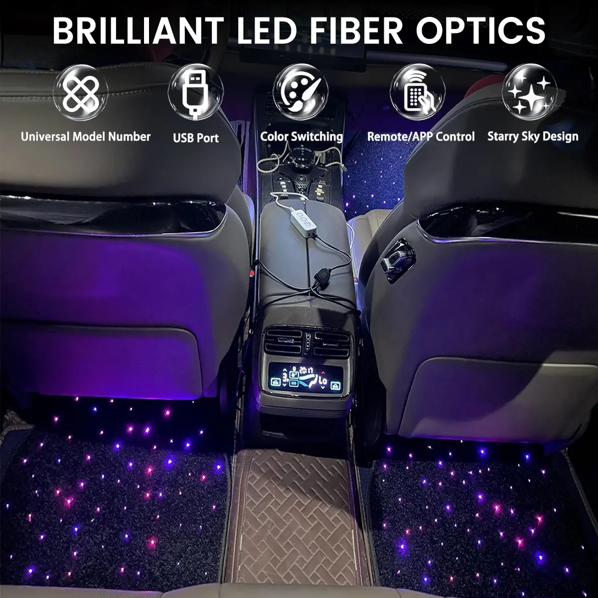 Upgrade your car’s interior with a breathtaking fiber optic starry sky floor mat! Designed to create a luxurious and futuristic ambiance, this floor mat features brilliant LED fiber optics that illuminate in a dazzling array of colors and effects. Perfect for car enthusiasts, night drives, and those who love a unique aesthetic!