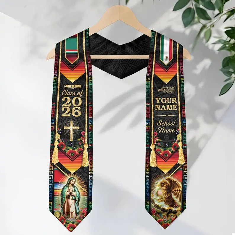 Class of 2026 Graduation Stole, Custom Name School Stole, Catholic Faith Virgin Mary Design, Personalized Graduation Sash Gift