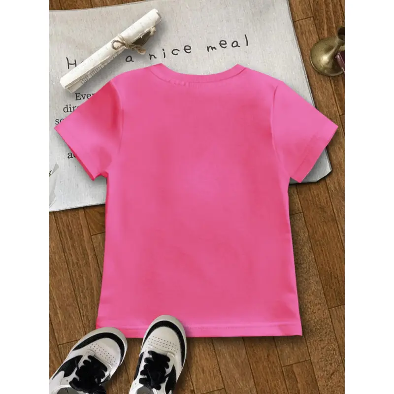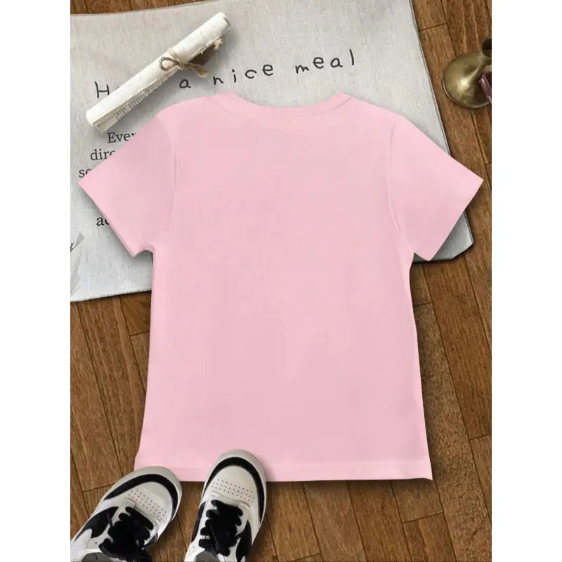 Girls' Easter, Kpop Cool Girl Star Print Short Sleeve T-Shirt, Comfortable Soft Fabric, Casual Sportswear, Perfect Gift for Girls