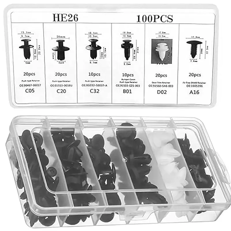 ·Comprehensive Set: This set includes 100 buckles and 6 types of plastic fasteners. Perfect for automotive maintenance and installation. 🛠️