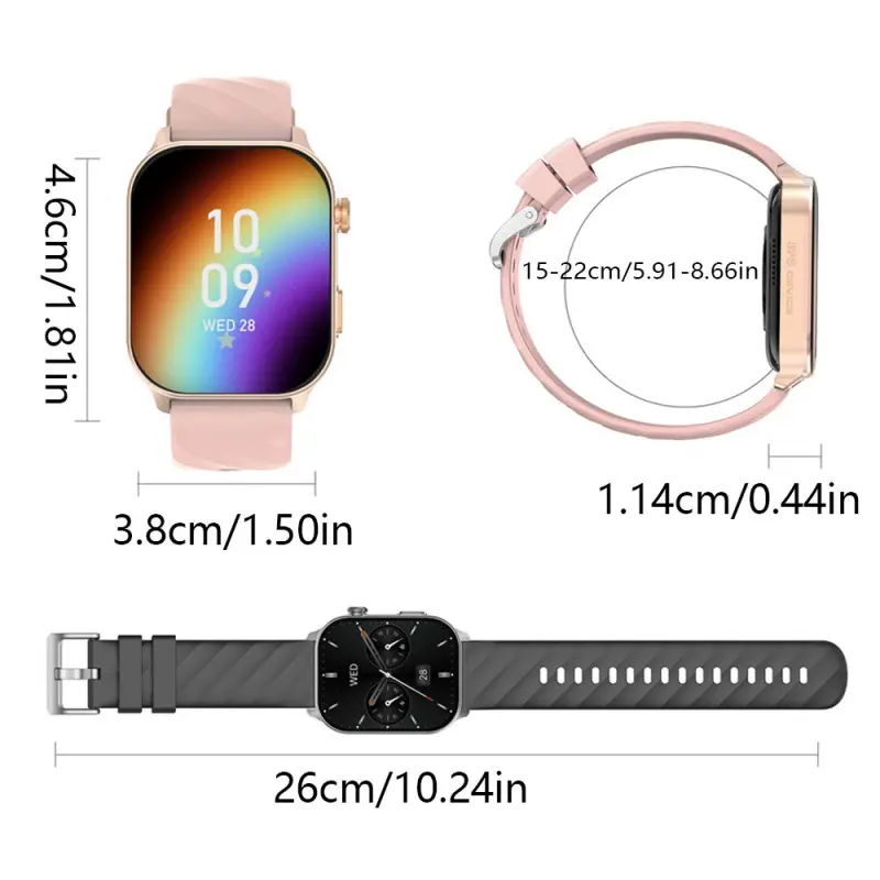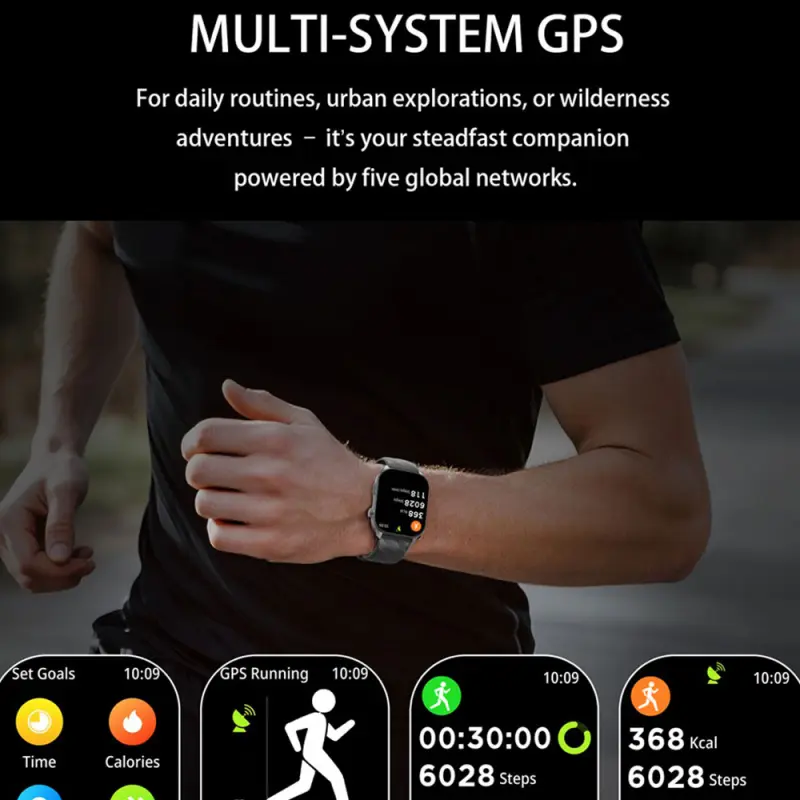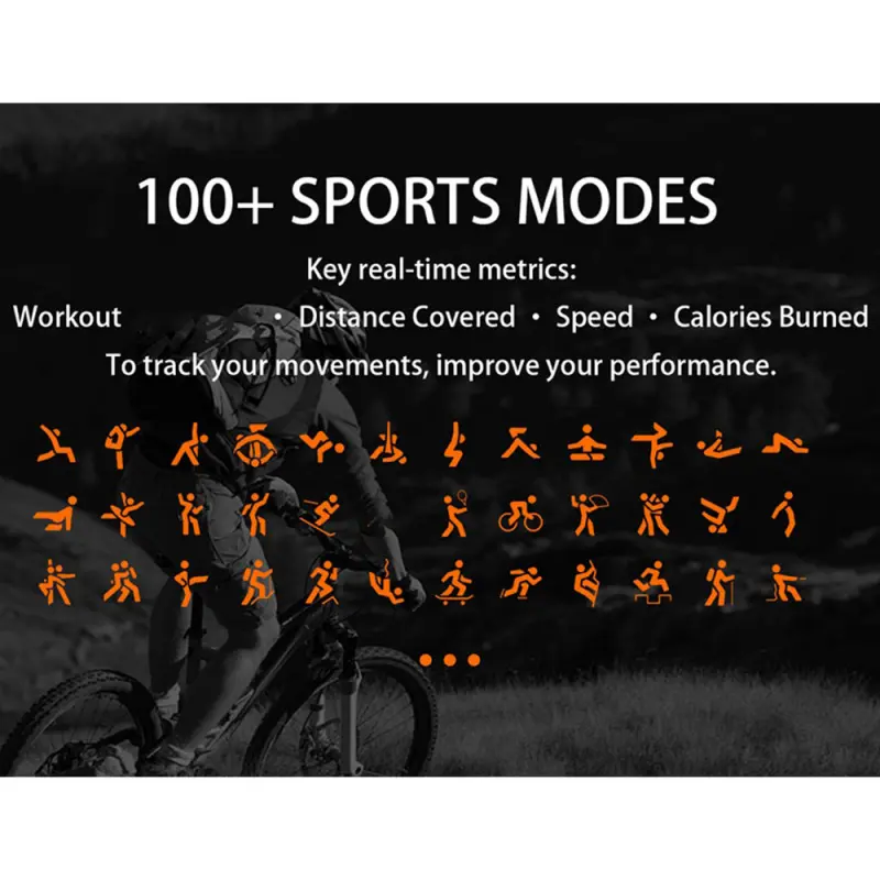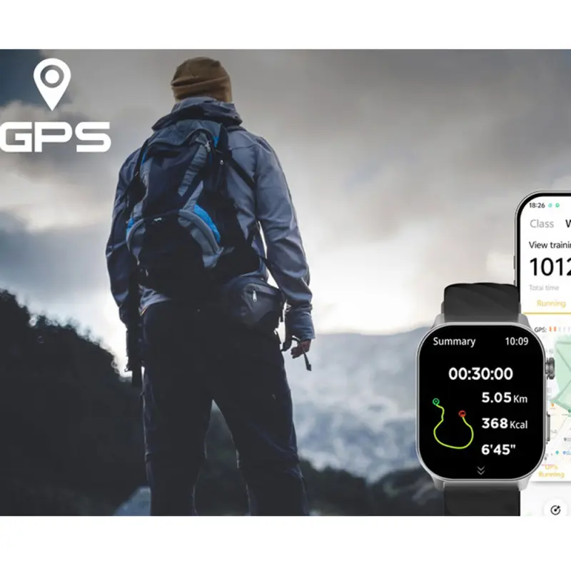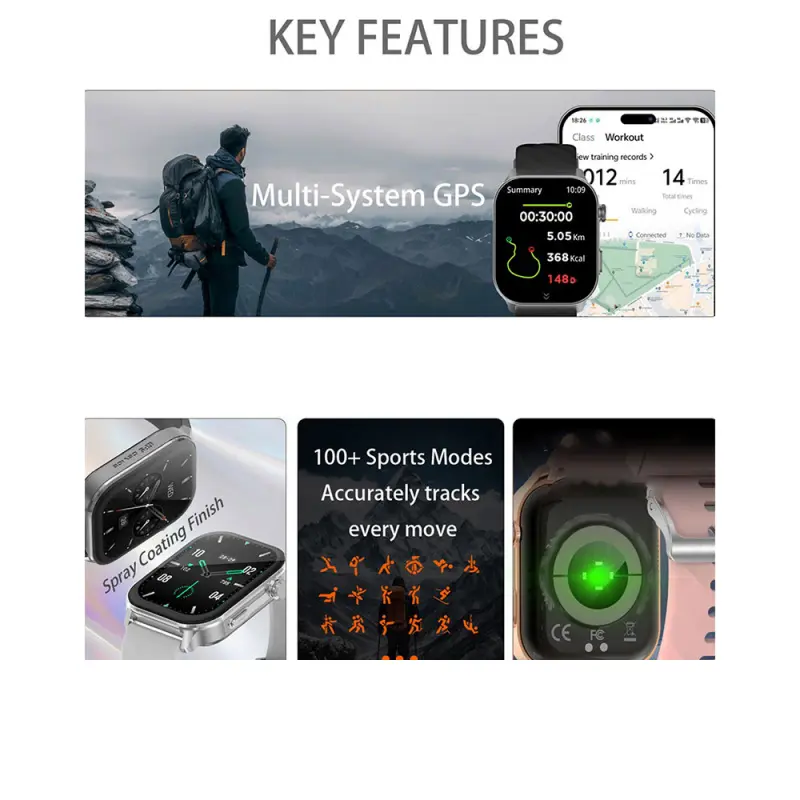 2.01-inch full touch screen, 350mAh ultra-long battery life, support for multiple languages, over 100 sports modes, five-star GPS tracking, 1ATM deep water resistance, wireless call, voice assistant, message notification, low power consumption, etc
