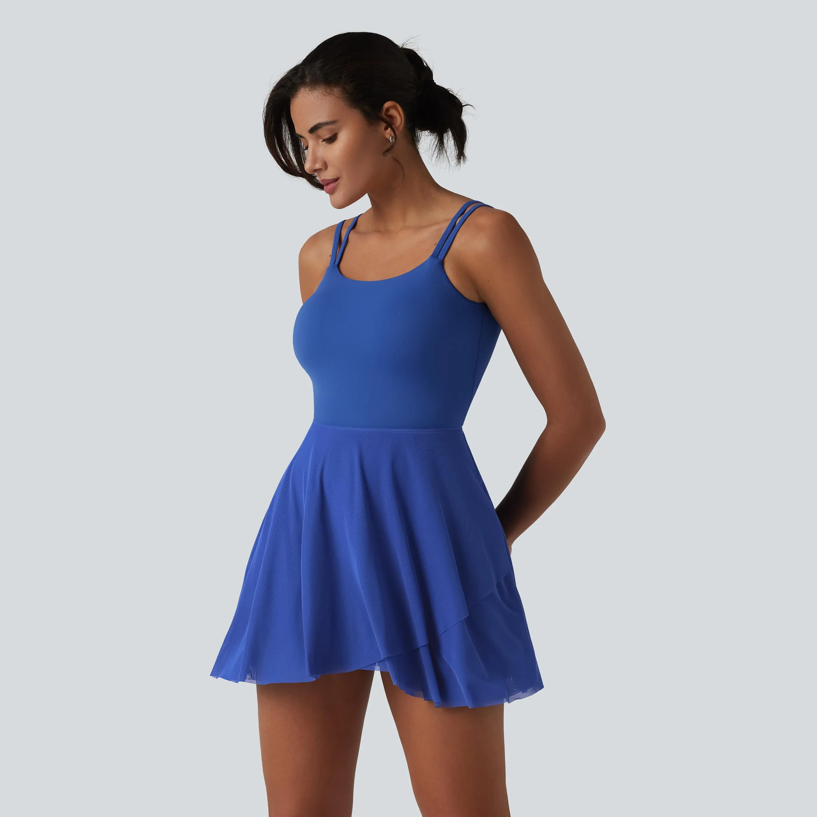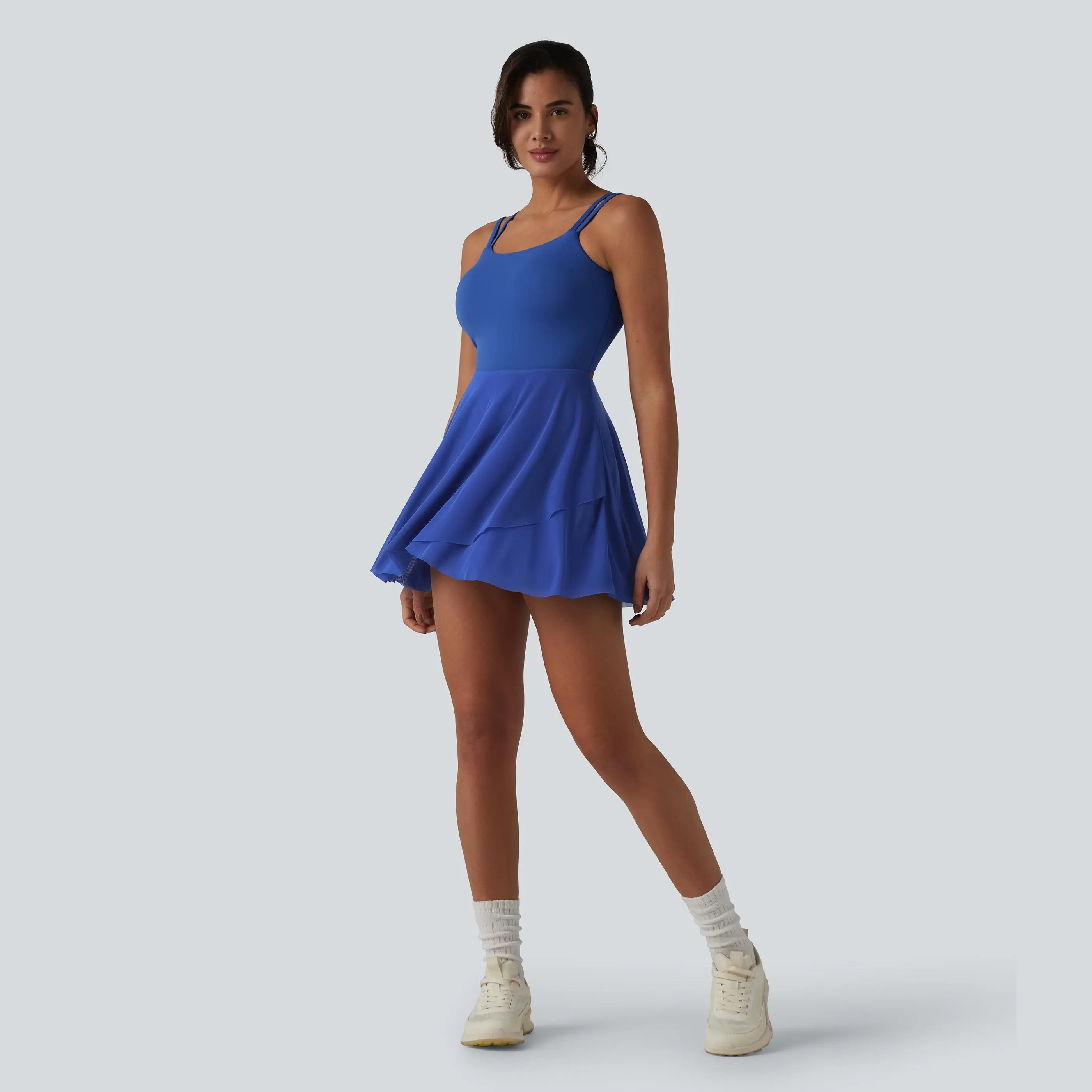 Halara SoftlyZero Built-in Bra Contrast Mesh 2-in-1 Mini Tennis Active Slip Dress with Pockets-Easy Peezy Edition-UPF50+