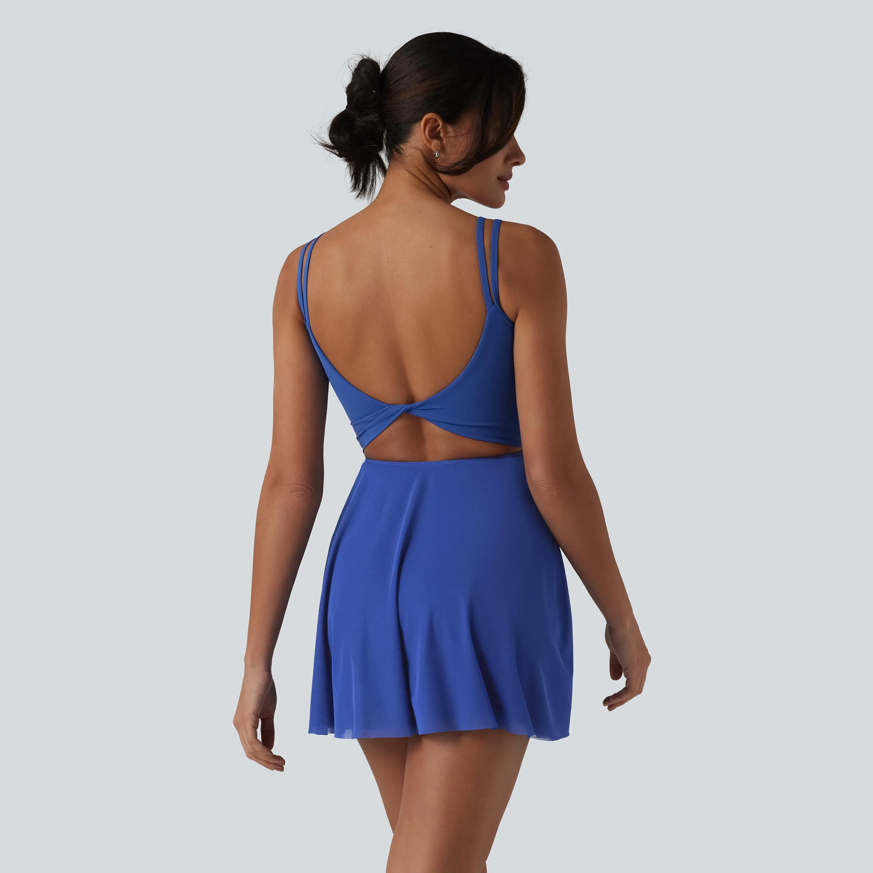 ·Features: A stylish backless design to show off some skin. Twisted design adds volume to your look for effortless style. Removable pads for customized support whenever you need it. The contrast mesh design creates a breezy feel. Built-in shorts with open back waistband for easy peezy bathroom breaks. Mini-length design that hits right at the thigh. Featuring two side pockets for storing your essentials such as credit cards or other small items when you're on the go. No need to undress when you need to use the bathroom. The attached built-in shorts are easy to slip on and off. Four-way stretch fabric offers ease of movement and durable wearability.