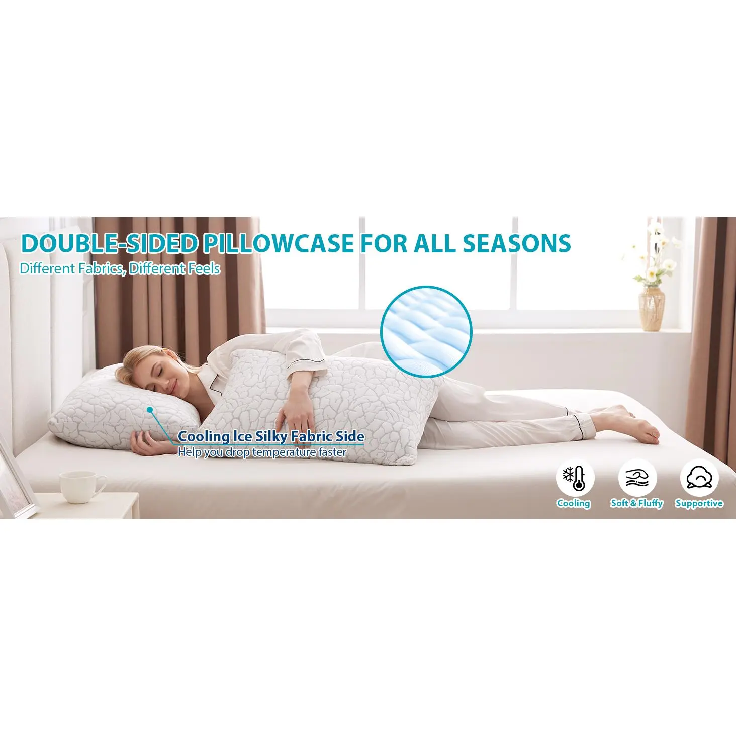 Customizable Comfort for Every Sleeper: WGAKCED shredded memory foam pillows allow you to adjust the fill to your preferred height and firmness, offering personalized support for side, back, and stomach sleepers.Simply unzip the outer and inner layer to adjust the shredded memory foam, ensuring a truly restful night’s sleepCooling Pillows for Hot Sleepers: Designed with two unique fabric sides, the cooling pillows provide a cool sleeping experience all night long.The cooling ice silk side helps drop temperature faster for hot sleepersthe soft side keeps you comfortable and sweat-free throughout the nightEasy Maintenance and Long Lasting Quality: Featuring a removable and machine-washable cover, these bed pillows are effortless to clean and maintain.The high quality shredded memory foam resists deformation and ensures long-lasting durabilityErgonomic Firm Support for Pain Relief: These firm pillows are filled with shredded memory foam that conforms to your head, neck, and shoulders, providing optimal spinal alignment and pressure relief.The ergonomic design helps alleviate neck pain and stiffness, ensuring you wake up feeling refreshed and rejuvenated every morningConvenient Packaging: Available in single or 2-pack optionsthe cooling pillow is packed in a vacuum-sealed bag, gently fluff and knead the pillow after unboxing to restore its full shape quickly