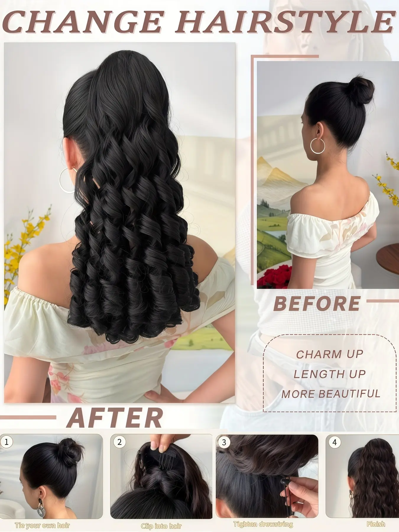 【Long-Lasting Curls】: Crafted with defined Roman spiral curls (loose wave pattern), this 20 inch ponytail delivers dramatic length and bouncy, romantic movement. The tight, well-formed spiral ends maintain their shape all day, creating a glamorous, head-turning look ideal for beach days, date nights, parties, or photoshoots. The long, flowing waves add instant length and volume to any hairstyle.