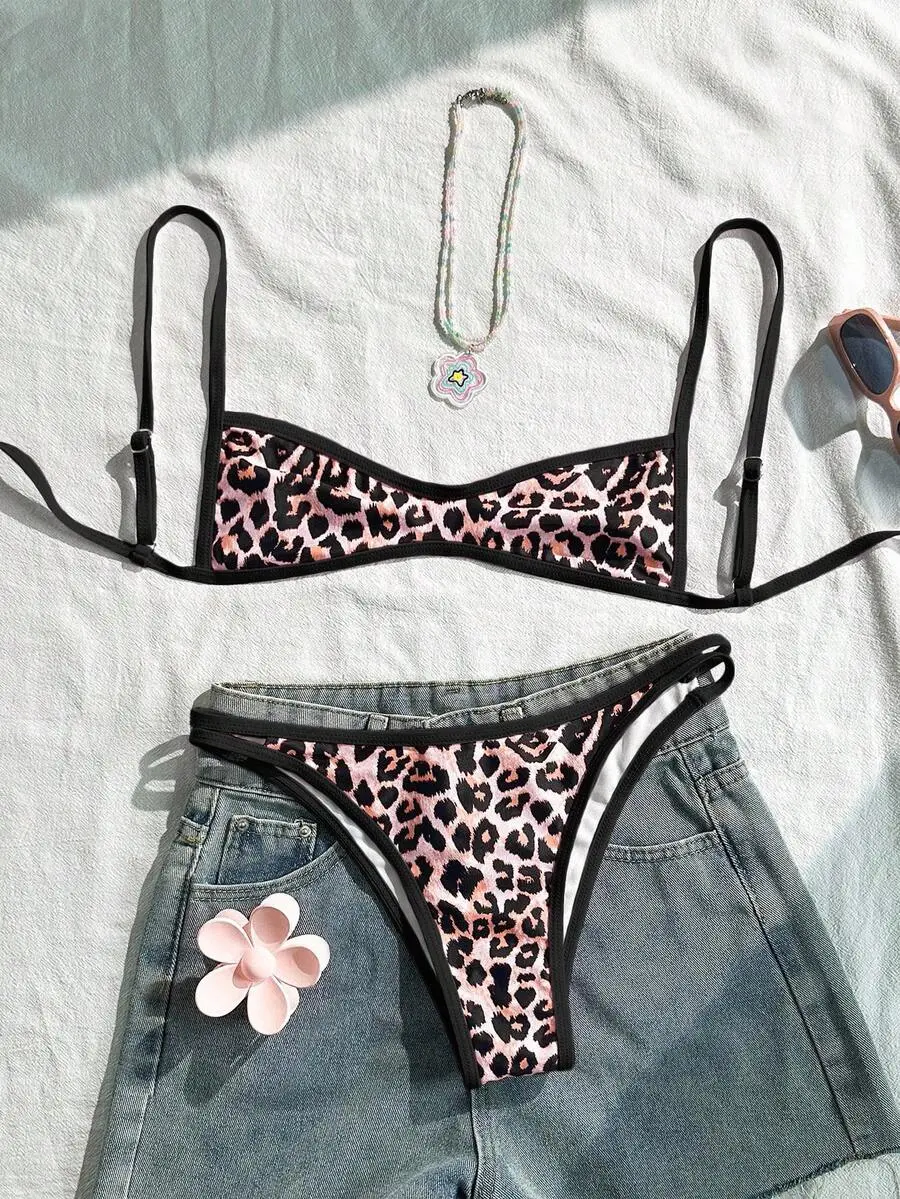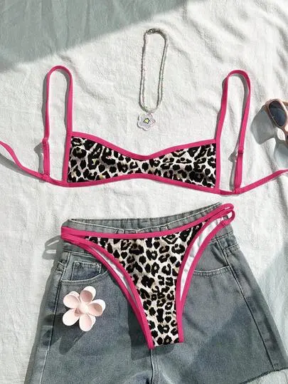 MINSARA Y2K Inspired Animal Pattern Bathing Suit Duo Crafted For Tropical Vacations And Oceanfront Lounging