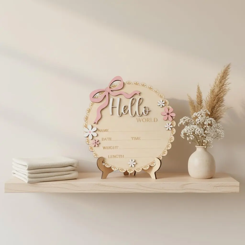 ·Beautiful Birth Announcement Board – Designed to record baby name, birth date, time, weight, and length in one timeless keepsake.