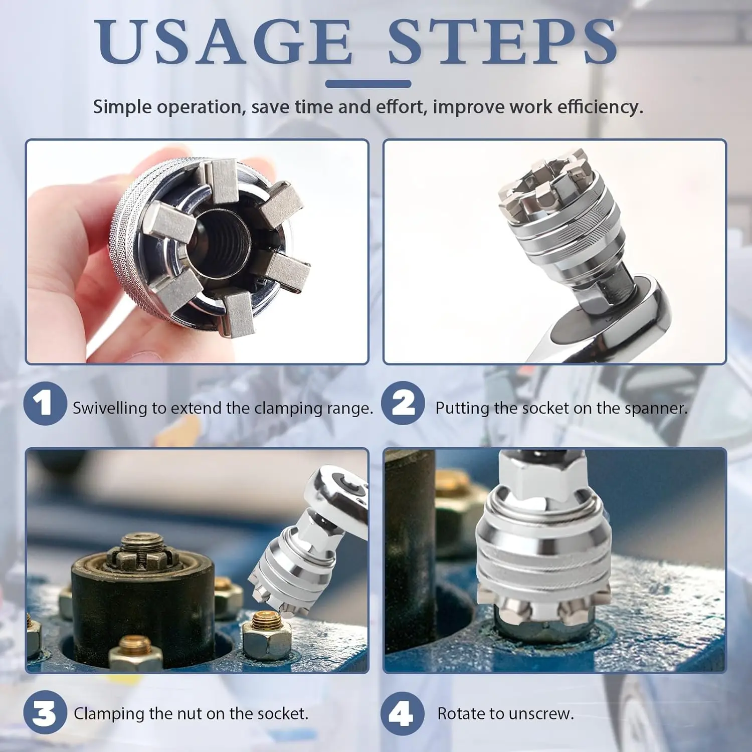 ·Adjustable Sockets: 10-19mm range for flexibility.