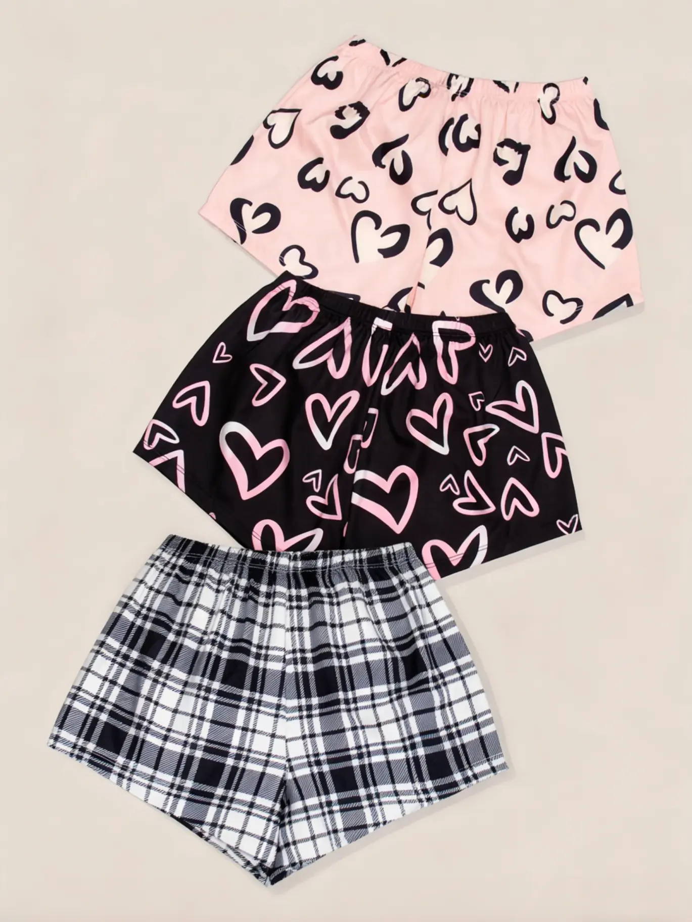 🌟 New! Women's Heart Print Elastic Waist Shorts Pyjama Set 🌟