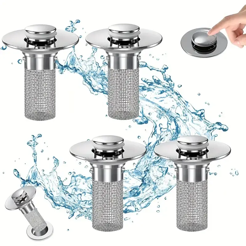 [Sink Hair Catcher] : Our bathroom sink drain filter is designed to catch hair and Valuables ( Jewelrys ) are not easy to slip in bathroom sinks or kitchen . It features a pop-up mechanism for easy opening and closing of the drain, and a removable stainless steel filter basket for convenient cleaning. [Universal Fit for Most Sink Holes]:Compatible with an extensive range of sink hole sizes, this stopper fits 99% of sinks with inner diameters between 1.06-1.26 inches. Ideal for use in wash basins, bathroom sinks, and shower tubs, it includes two rubber ring sizes (34mm and 40mm) to ensure a tight fit with various drainage sizes. [Unique Function ]: Sink Drain Plug or Strainer? You Need Everything. The Sink Drain Strainer Unlike Other Traditional Bathroom Drain Stopper, Our Pop Up Sink Drain Stopper Have a Clog-Proof Basket Inside That Combines a Drain Stopper and a Strainer in one, What an Expensive Achievement! [Easy To Use]: The pop-up sink drain filter is made with a brass core structure for durability and a long service life. It is easy to install by simply replacing the old sink plug with the new one. Cleaning is also a breeze, as you can simply remove the filter basket and rinse it under running water. [Best Choice ]: This sink stopper is a practical choice for any bathroom sink. Its efficient drainage and clogging prevention capabilities, coupled with its easy-to-clean design, make it a reliable and low-maintenance solution for bathroom sinks.