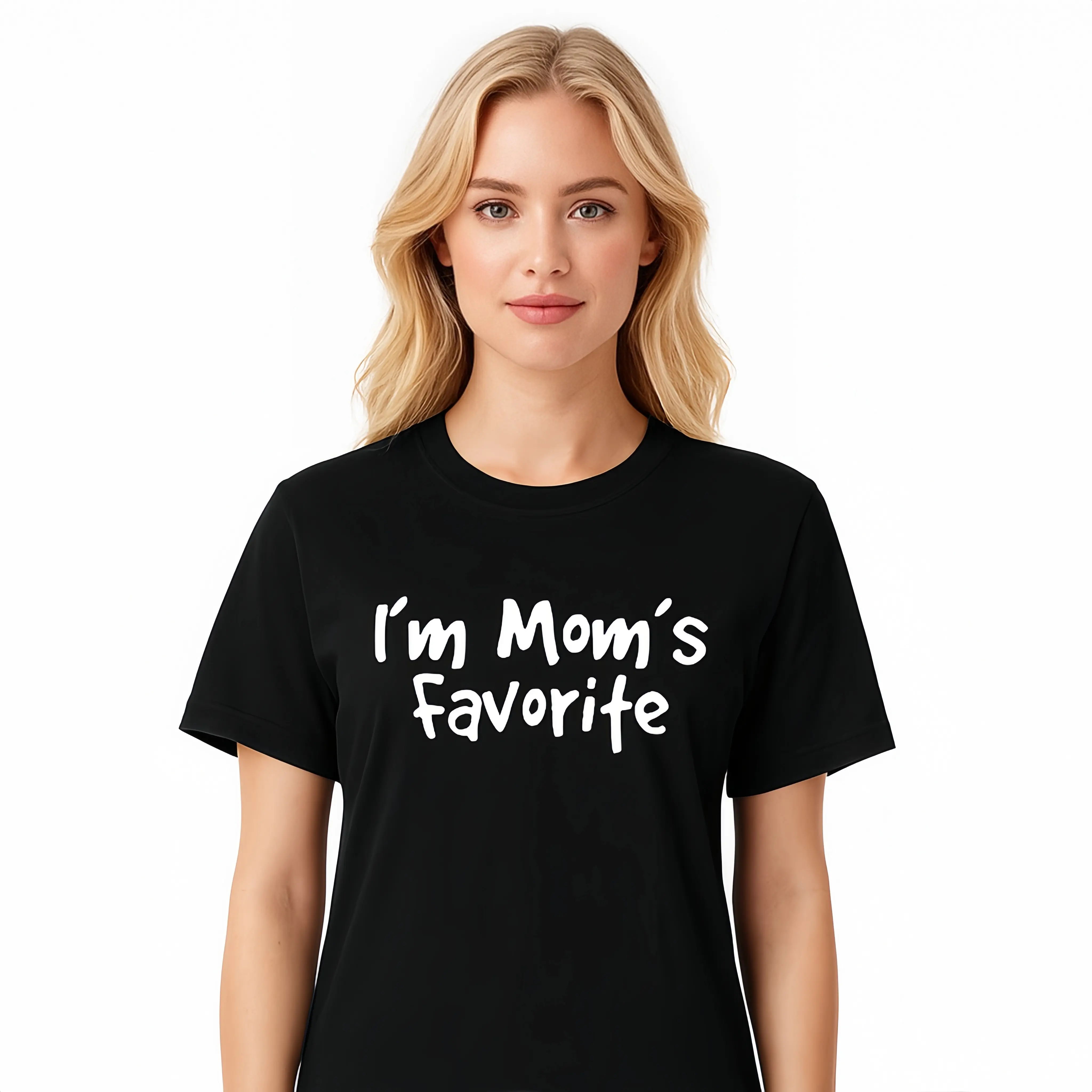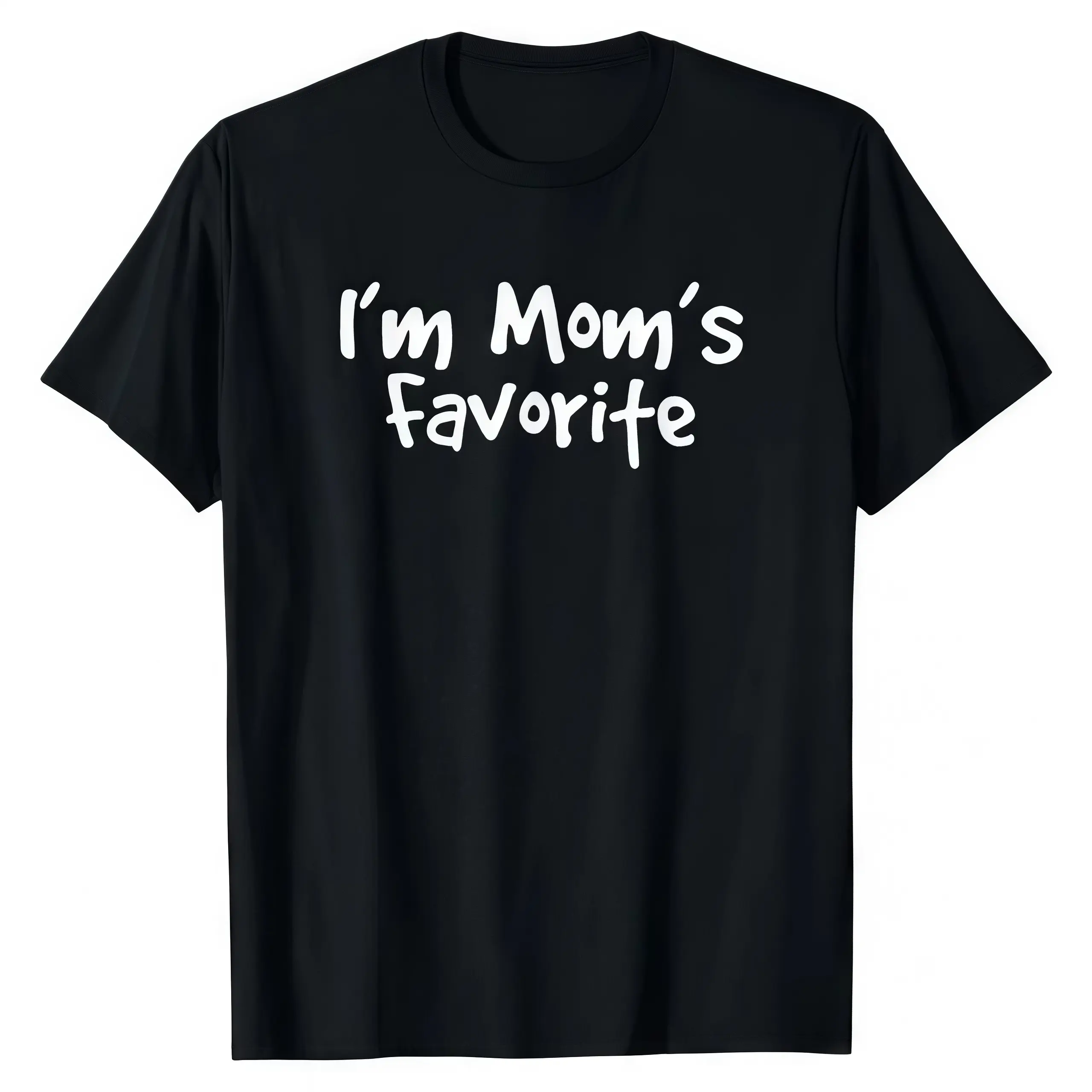 Funny Mom's Favorite Son Daughter I'm Mom's Favorite T-Shirt Black Casual Crewneck Fitted Shortsleeve Golf Gift for Men Women Summer Wear