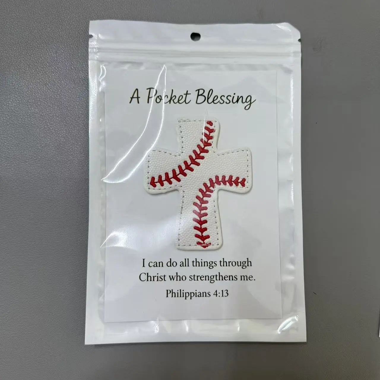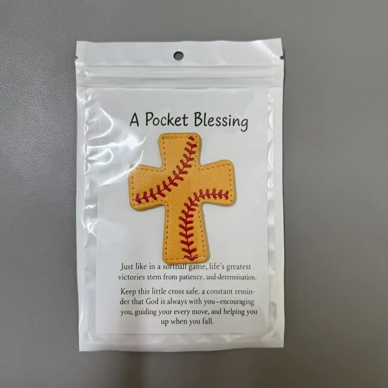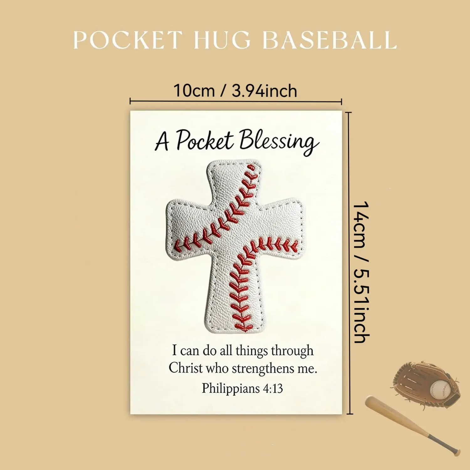 Pocket Blessing Baseball Cross Leather Encouragement Card, Faith Gift for Athletes, Inspirational Sports Souvenir