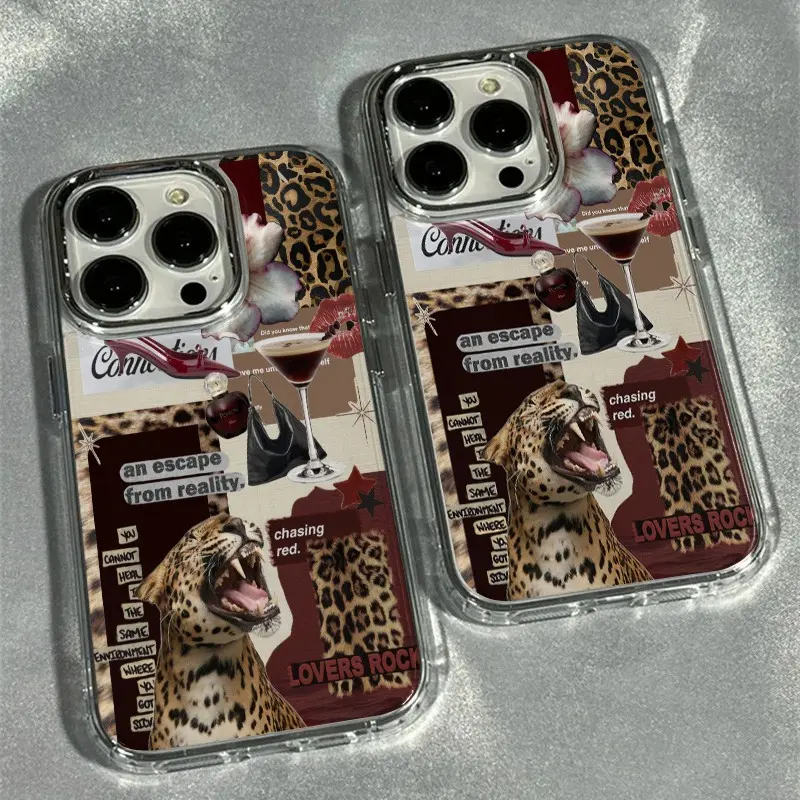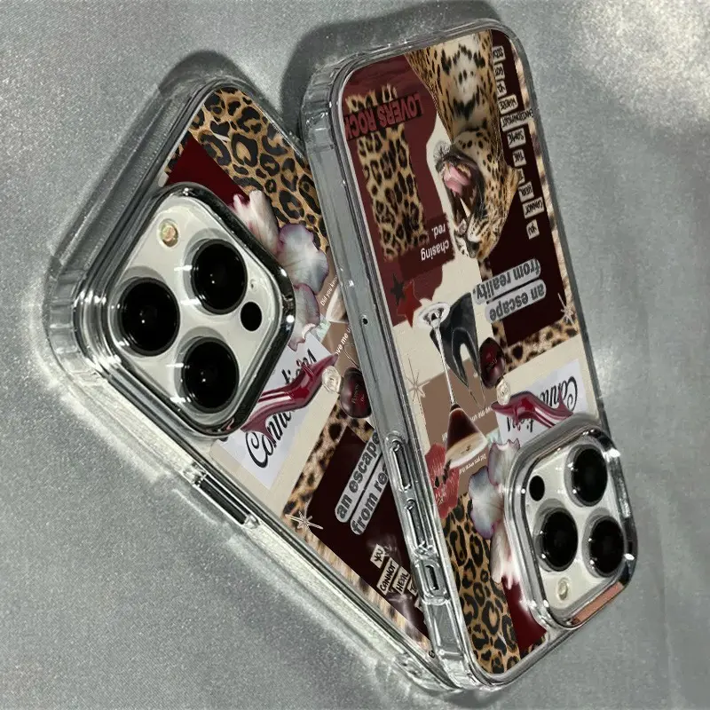 Phone Case for iPhone 17 Air Pro Max 16 15 14 13 12 Air Plus Pro Max Series Protective Cover, Leopard Print Transparent Electroplated Lens Frame