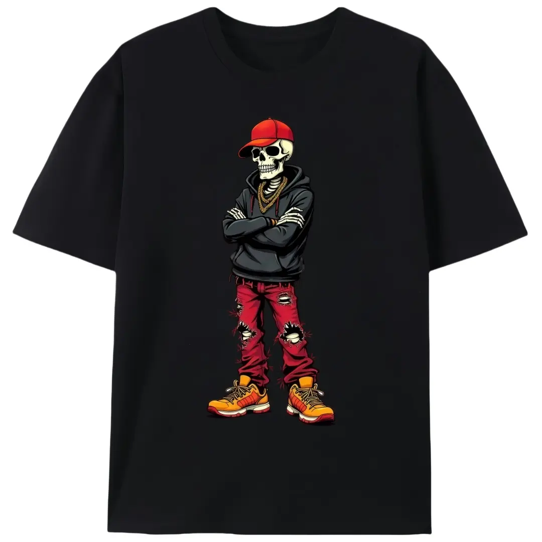 Hip-Hop Skeleton Summer T-Shirt, Men's Unisex Streetwear Graphic Tee, Cool Skeleton Casual Shirt for Hip-Hop Lovers