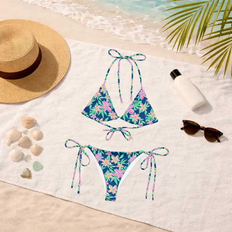 Blossom Tropical Floral Matching Swimwear 2026, Women's String Bikini & Men's Swim Trunks, Colorful Hawaiian Couple Swimsuits, Summer Beachwear, Honeymoon Vacation Outfit