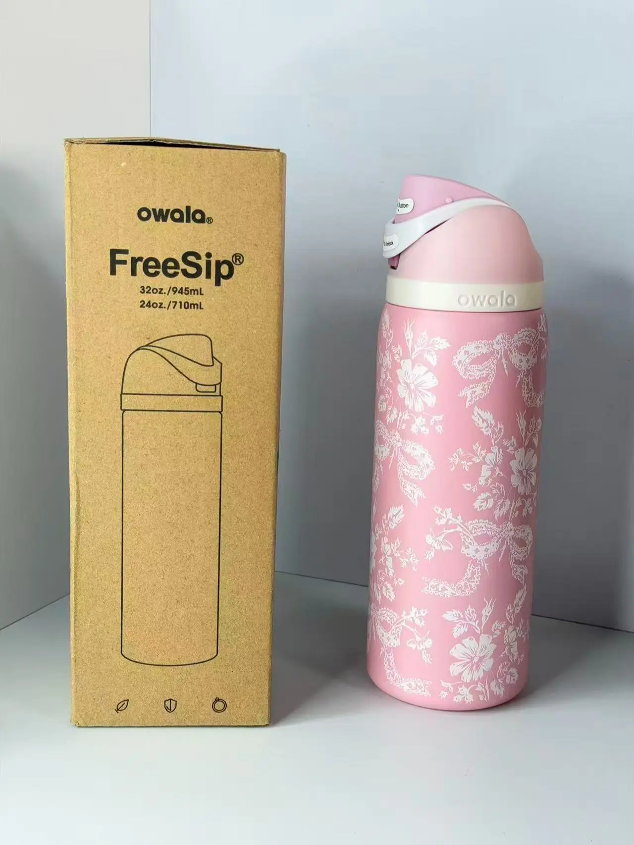 Owala 32oz Floral Print Insulated Stainless Steel Water Bottle with Straw, 32oz | Leak Proof, BPA-Free, Cute Pink Design for Travel & Daily Use Drinkware Flasks Bottled Mug Tumbler Portable Glass Juice Lids and handle steel tumbler Plaid Stranger Things