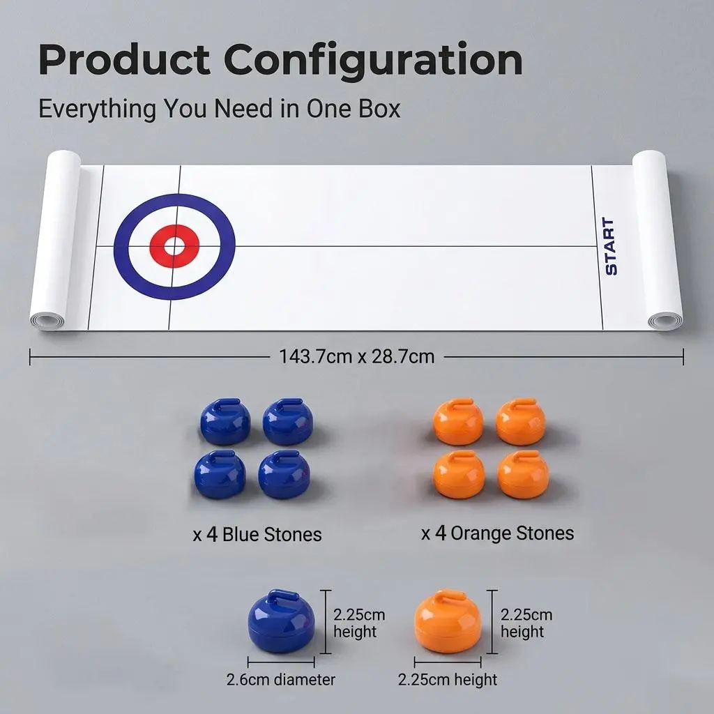 Tabletop Curling Game with 16 Stones, Portable Family Party Board Game