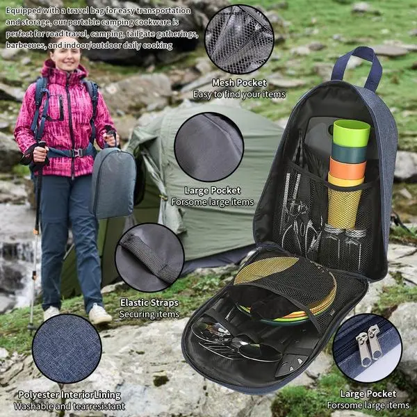 Compact and lightweight, this set is perfect for any outdoor adventure. Whether grilling by the campfire, preparing a meal on a hiking trail, or enjoying a picnic, this set is your versatile companion. Upgrade your camping culinary experience.
