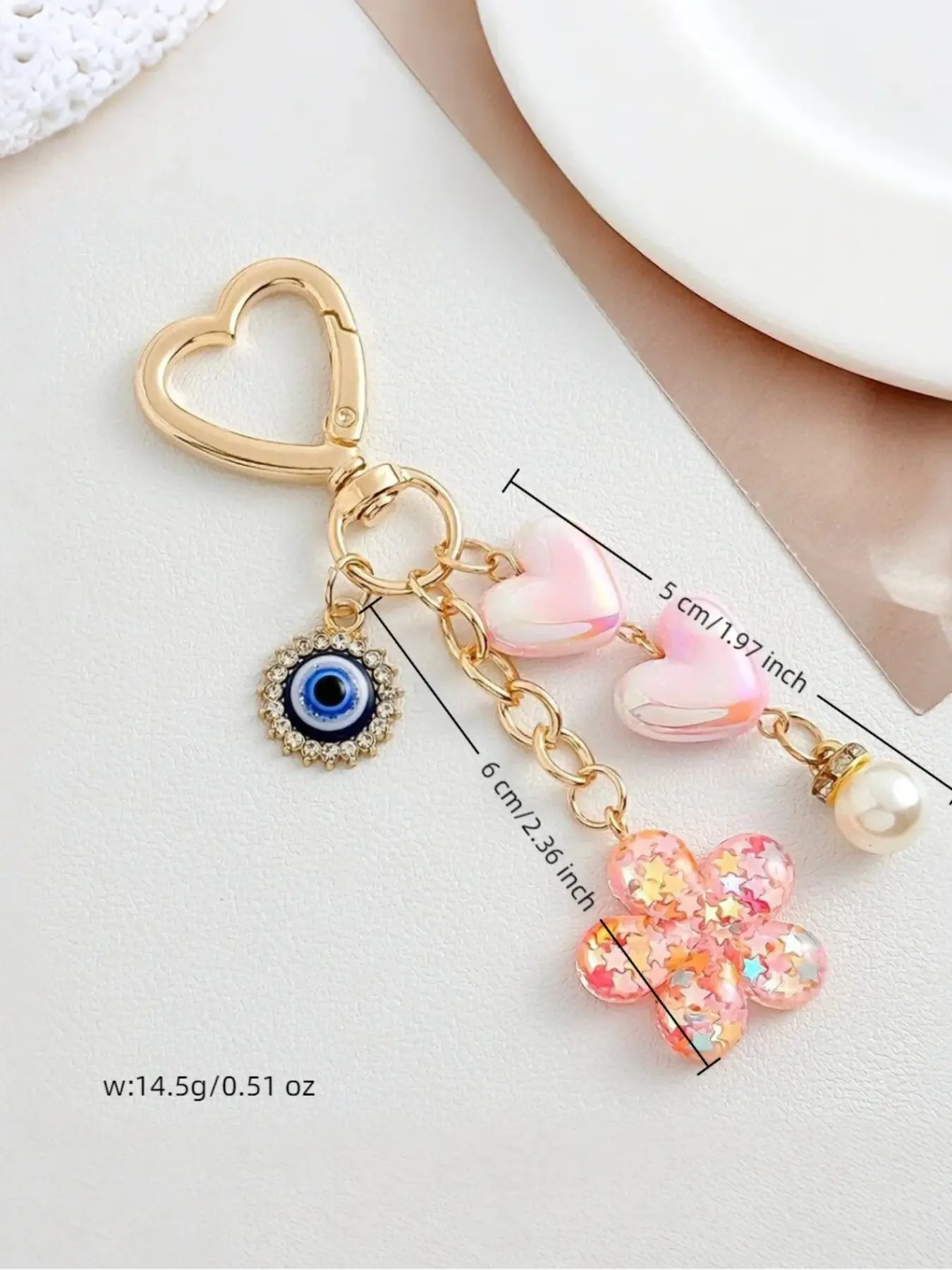 Trendy Heart Devil Eye Resin Keychain, DIY Bag Charm Decor, Friendship Gift, Graduation Season Accessory