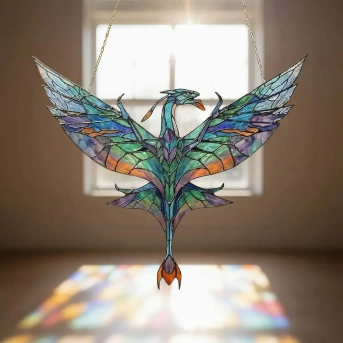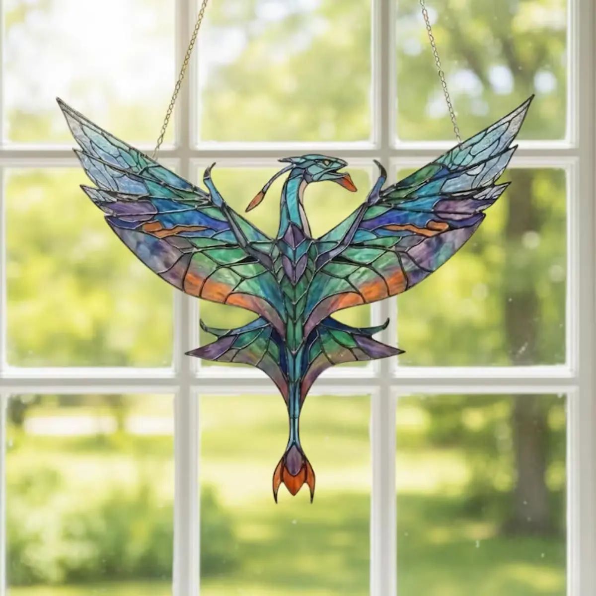 Brighten your home with this beautiful **stained glass suncatcher**, designed to capture sunlight and fill your space with vibrant colors. This elegant **window hanging decor** creates a warm, artistic atmosphere in any room.