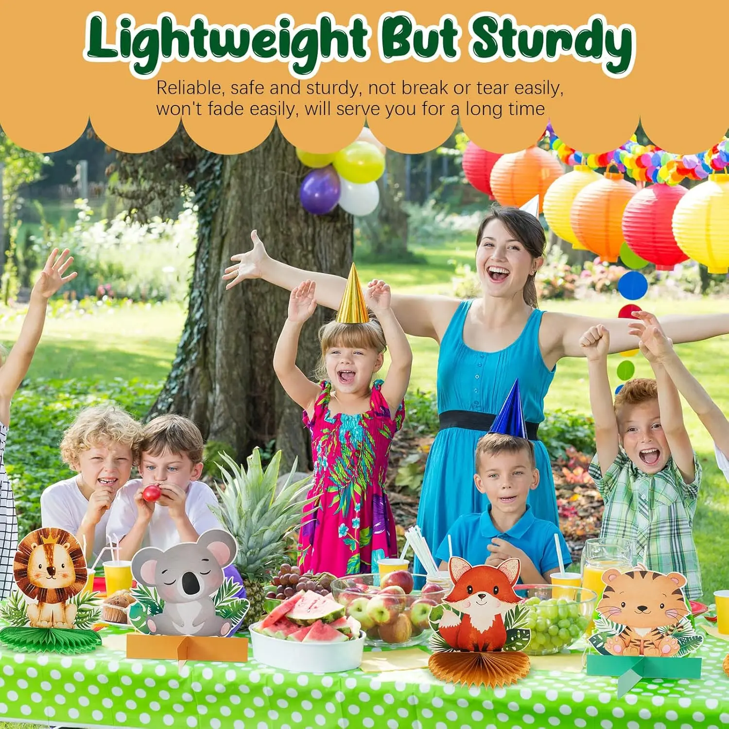 ·Best Fit Occasions: Ideal for safari baby showers, jungle animal birthdays, classroom parties, and other animal-theme events, easy to match with balloons, banners, and tableware