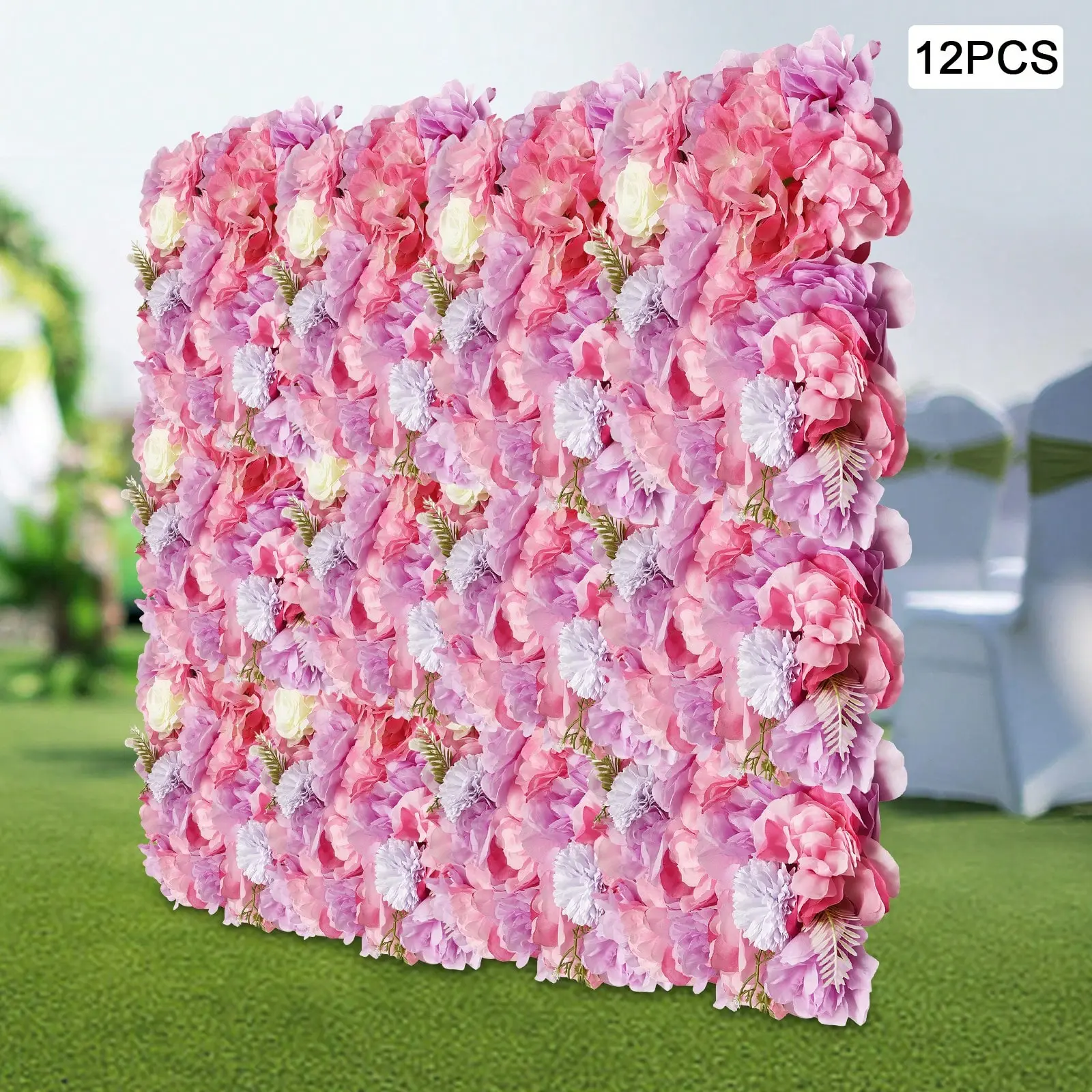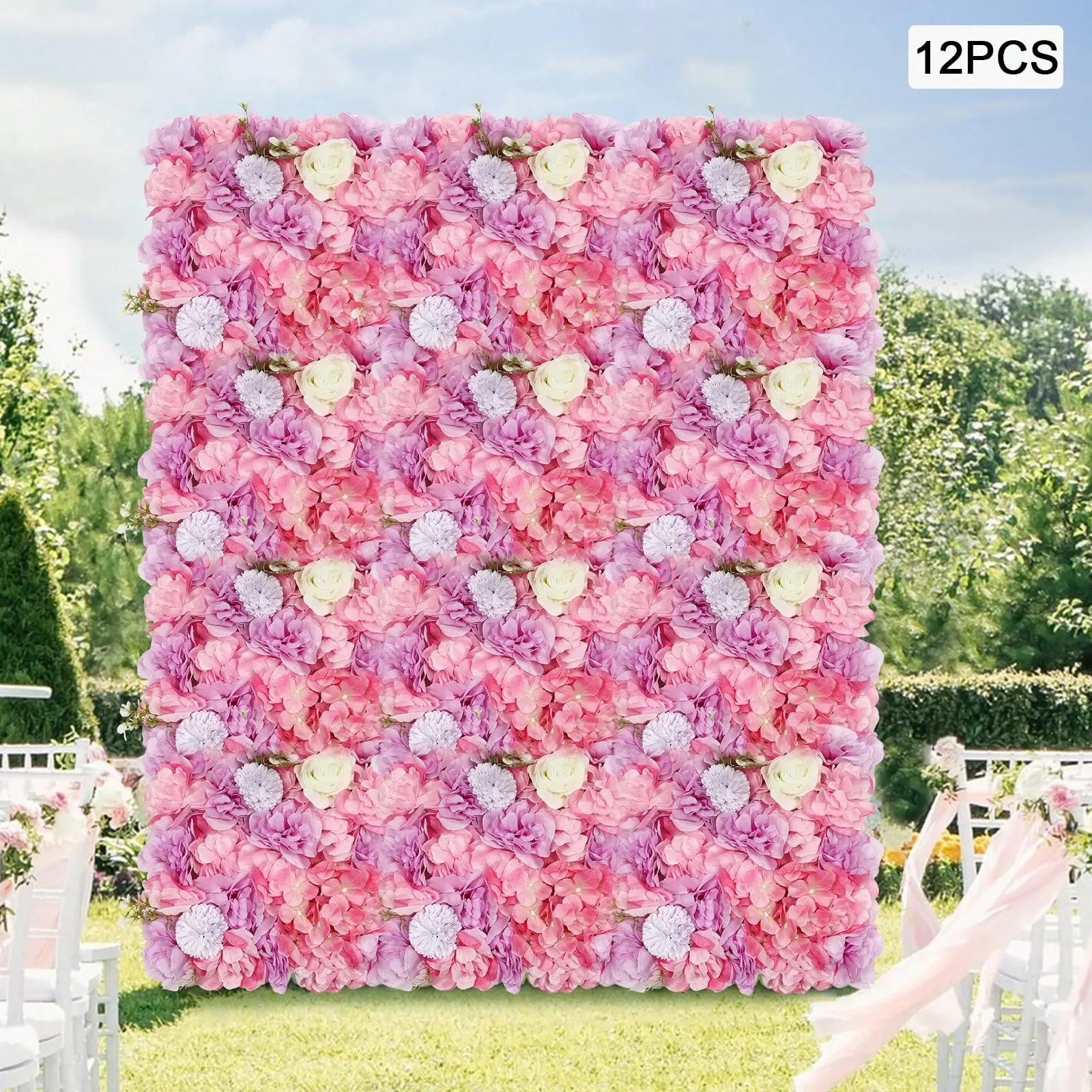 Flower Wall Backdrop, 12pcs 15x15 Inch Floral Wall Panel, Artificial Floral Wall Decor Ideal For Wedding Celebrations, Festive Party, Backdrops And Home Decor(White/White+Purple/Pink+Champagne/Pink+White/Pink+Purple)
